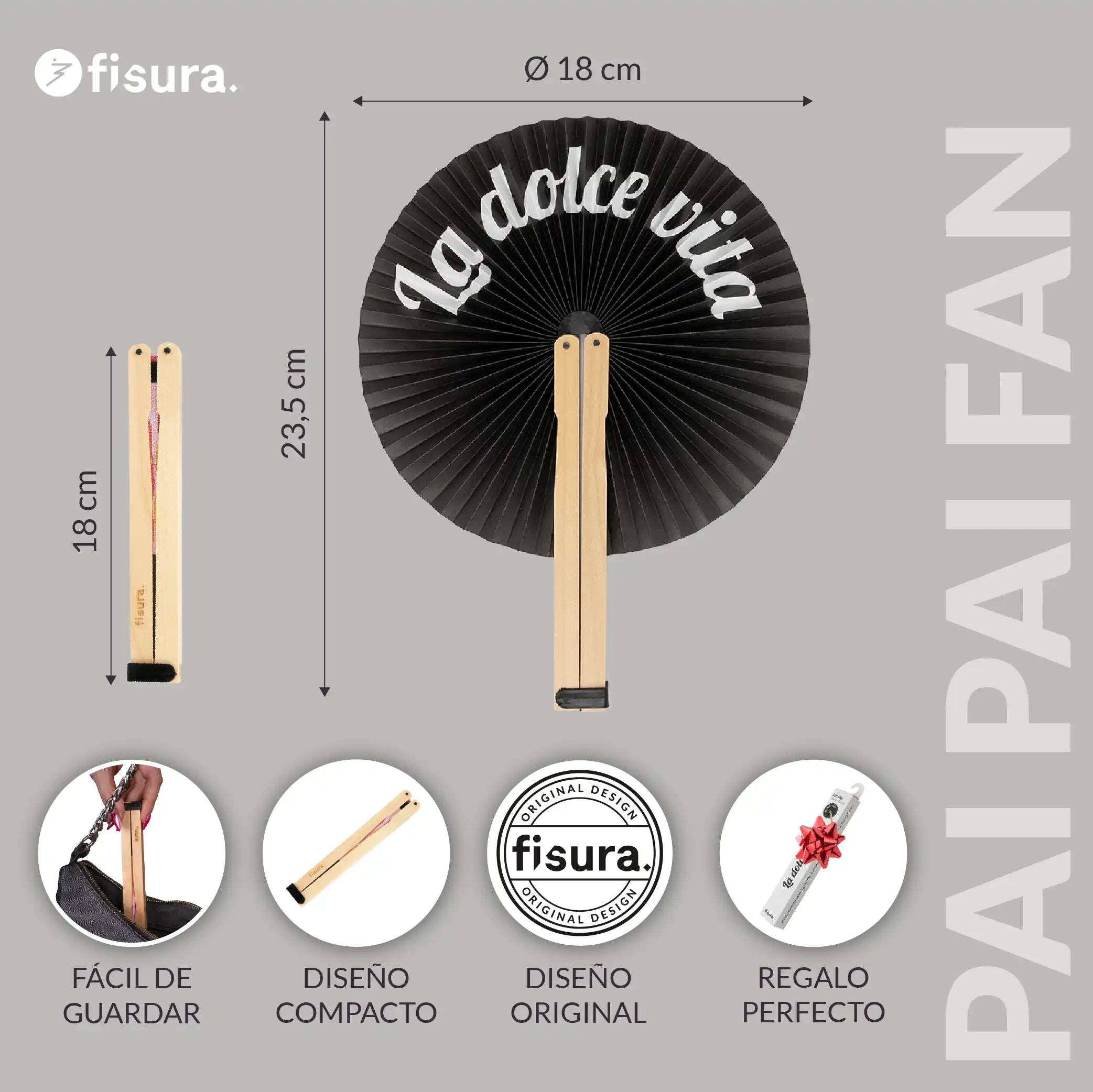 Y lo mejor de todo, cuando está cerrado el pai pai tiene un tamaño de 15 cm por lo que es perfecto para llevarlo contigo a todos lados. Desde tu bolso de fiesta 👜 hasta el bolsillo de tu pantalón ¡siempre estarás lista para combatir el calor con estilo gracias a este abanico original!