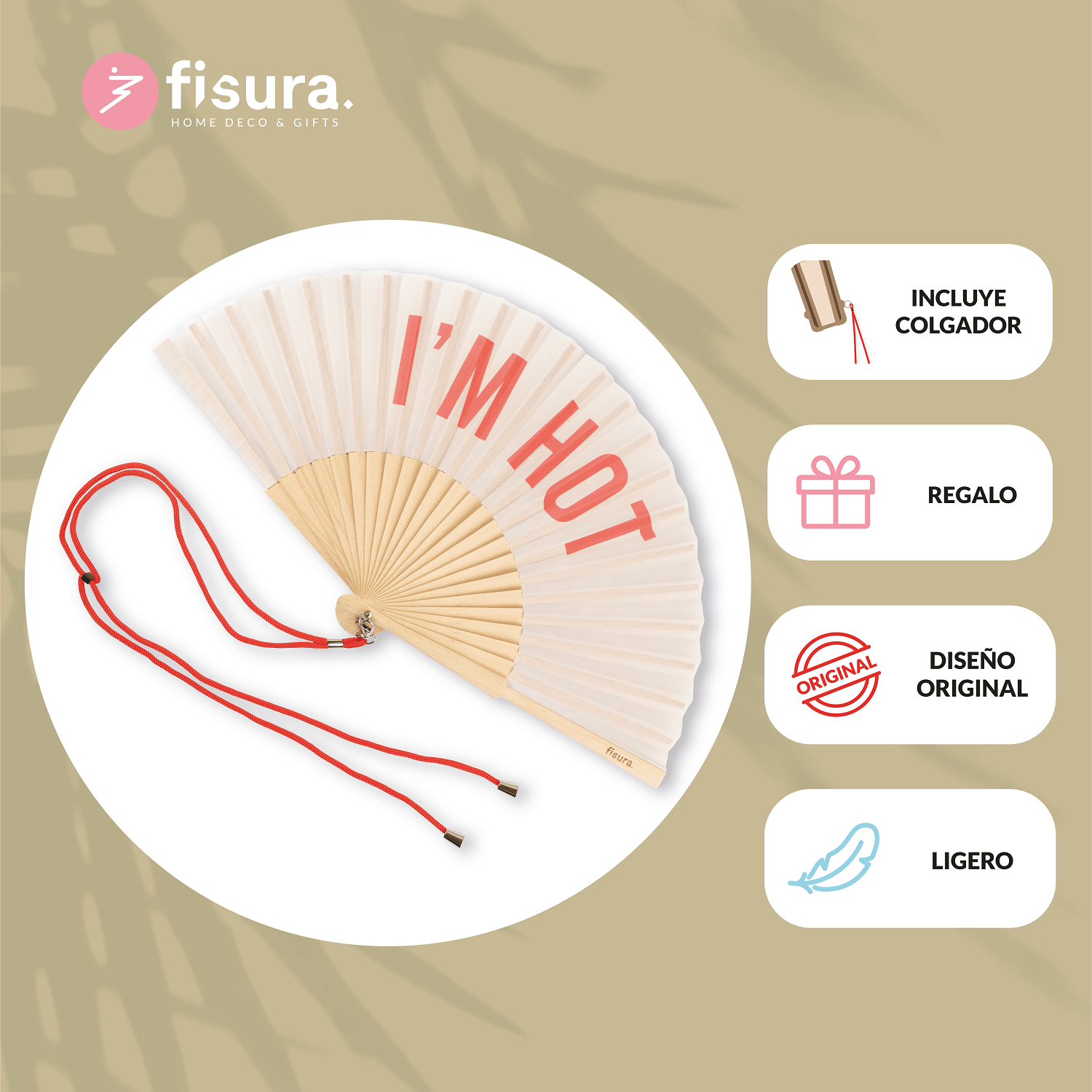 La bebida se te calienta en dos minutos, el pelo se te seca super rápido y tienes que ir por la calle persiguiendo las sombras. Tienes un calor que poco más y te derrites... ¡déjalo claro con este abanico original con el mensaje “I’m hot” que se convertirá en tu accesorio imprescindible para sobrevivir a los días más calurosos.