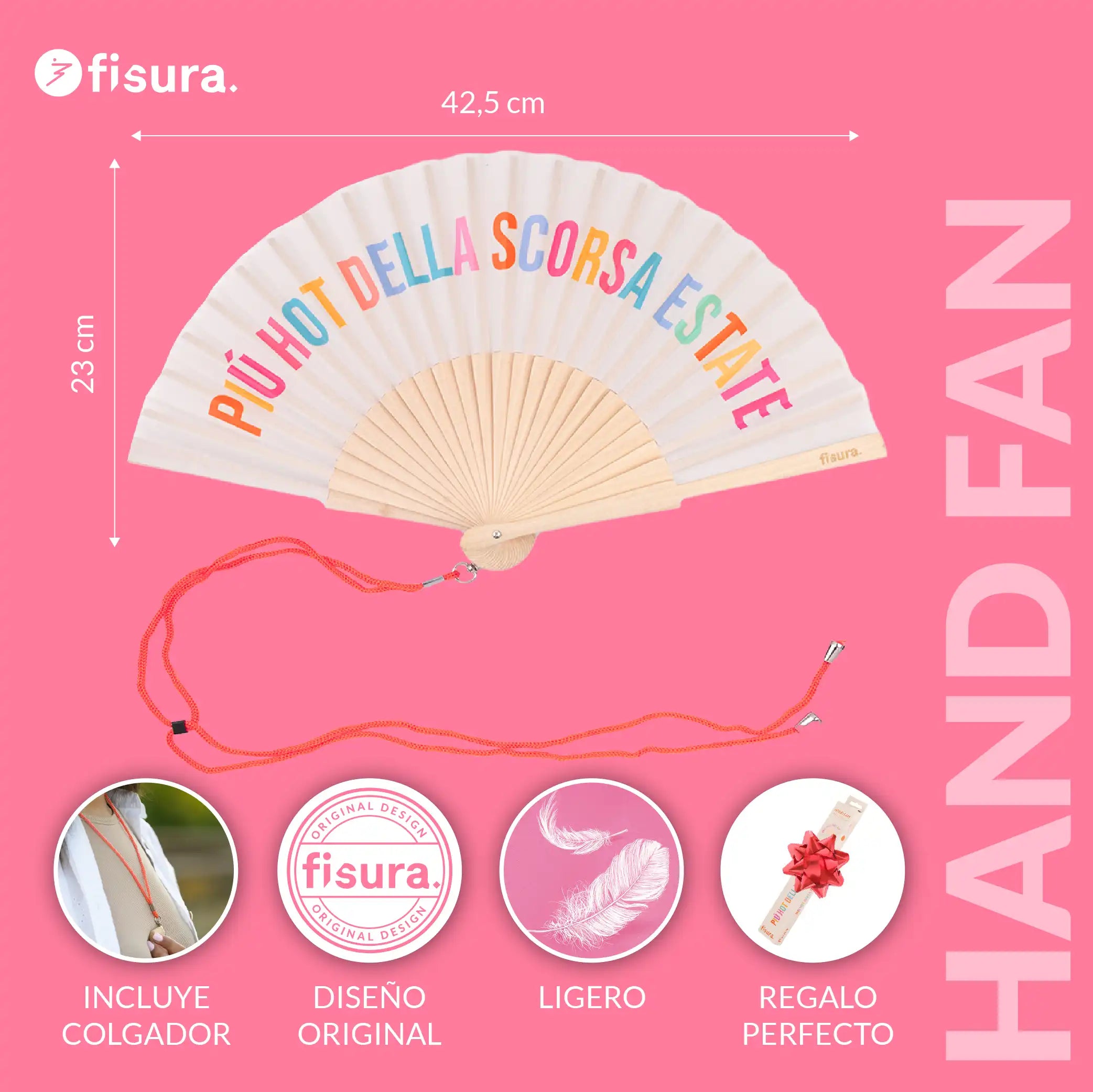 Si este verano vienes pisando más fuerte que nunca, este abanico con el mensaje en italiano “piú hot della scorsa estate” 🔥 se convertirá en tu mejor aliado. Porque cada año brillas más, te sientes mejor y el calor ya no es rival para tu actitud. ¡Que el termómetro suba lo que quiera… tú siempre estarás un paso por delante😏!