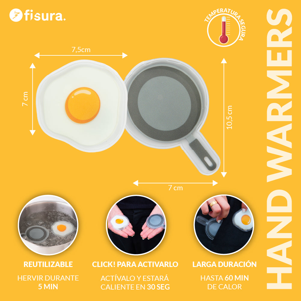 Este pack de 2 calentadores de manos originales con forma de huevo 🥚 y sartén 🍳 son el combo perfecto para esos días en los que hace un huevo de frío. ¡Es ideal para entrar en calor al instante y sacar una sonrisa a todo el que lo vea!