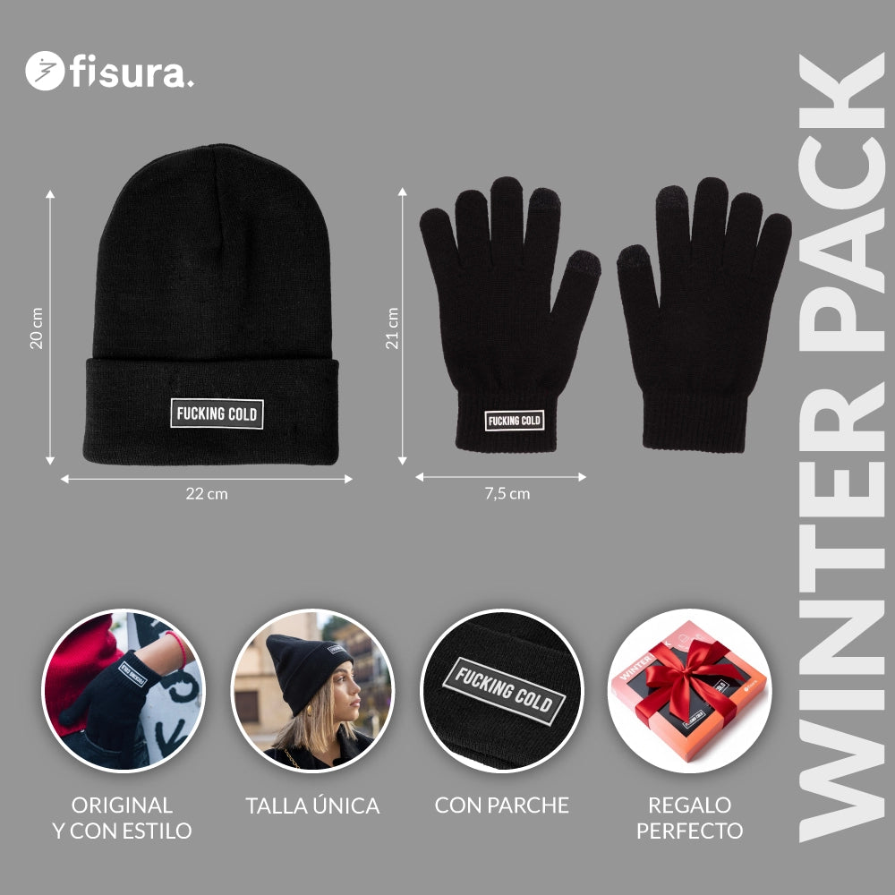 Pack de gorro y guantes "Fucking cold"