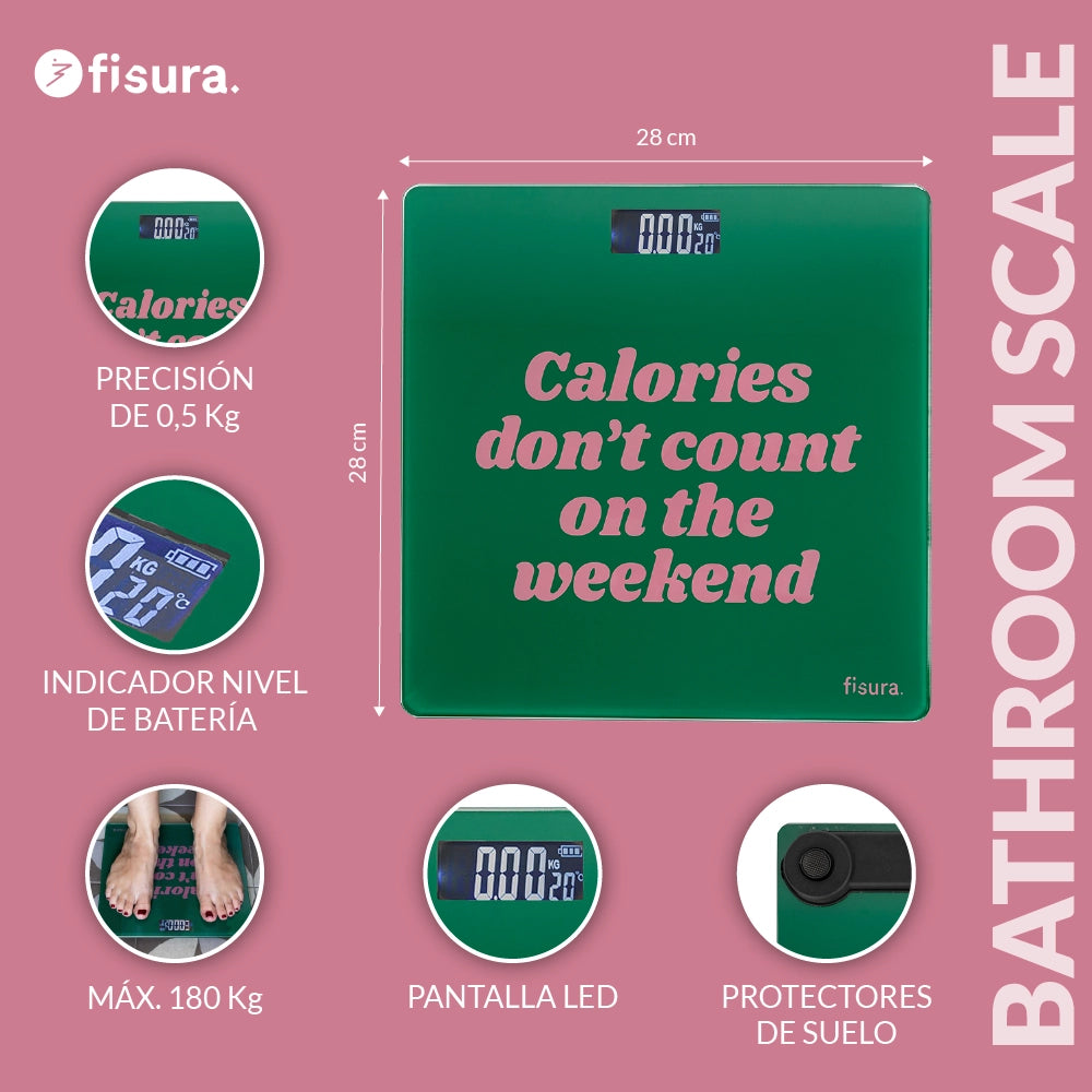 La báscula de baño original con su mensaje "calories don’t count on the weekend” te recordará que los fines de semana 📅 son para disfrutar sin remordimientos y que no pasa nada por darte un capricho.