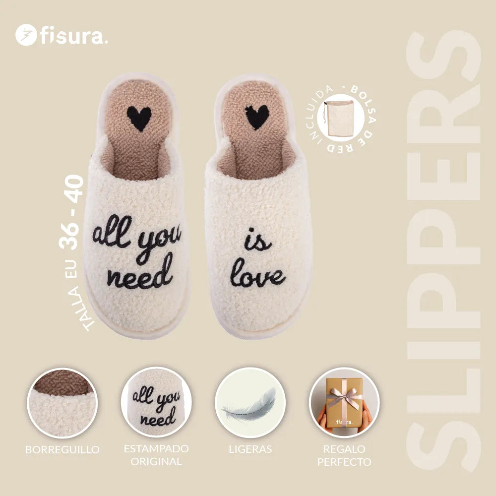 ¡Si el mejor plan para ti es desaparecer bajo una manta y no salir del sofá en todo el día, estas zapatillas de estar por casa originales son tu match perfecto! Con su mensaje “all you need is love” 💖 dejan claro que no necesitas nada más que mimos, peli y unas zapatillas chulas.