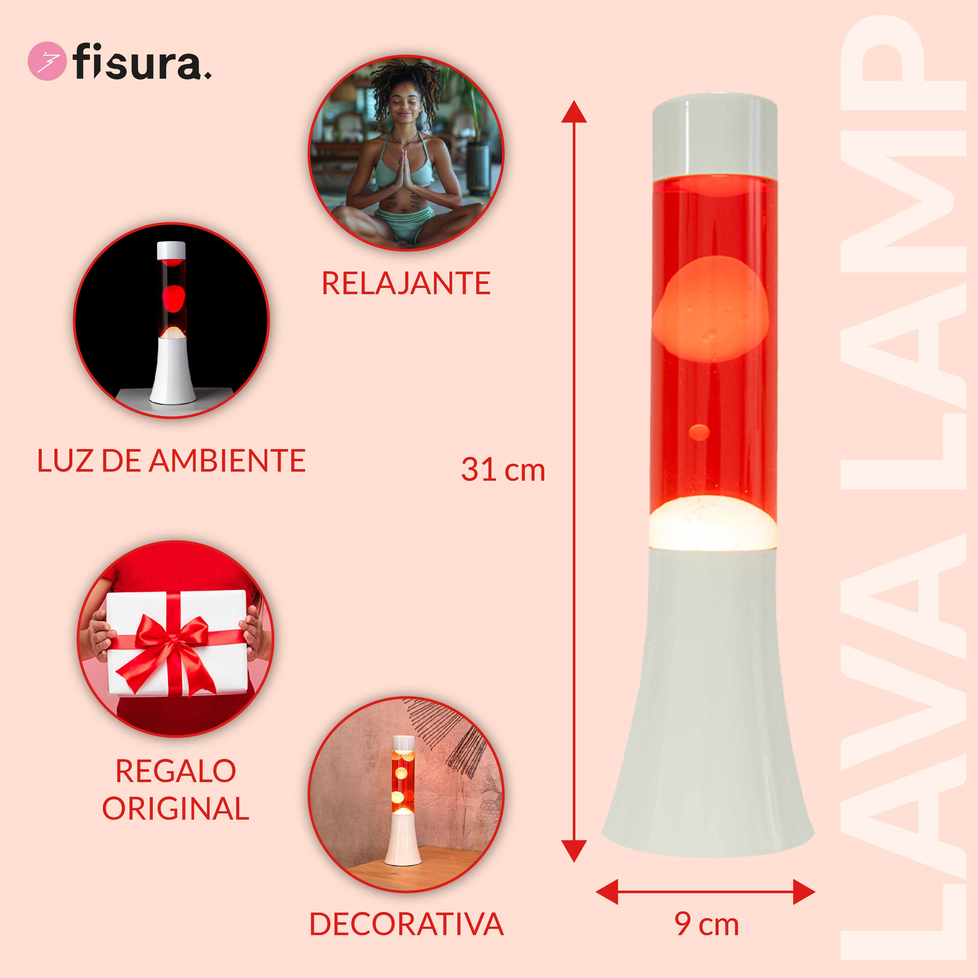 La lámpara de lava tiene un uso meramente decorativo, la luz es ambiental para decorar una estancia. No es recomendable que sea usada como foco de luz principal para lectura u otras tareas que requieran una mayor iluminación.