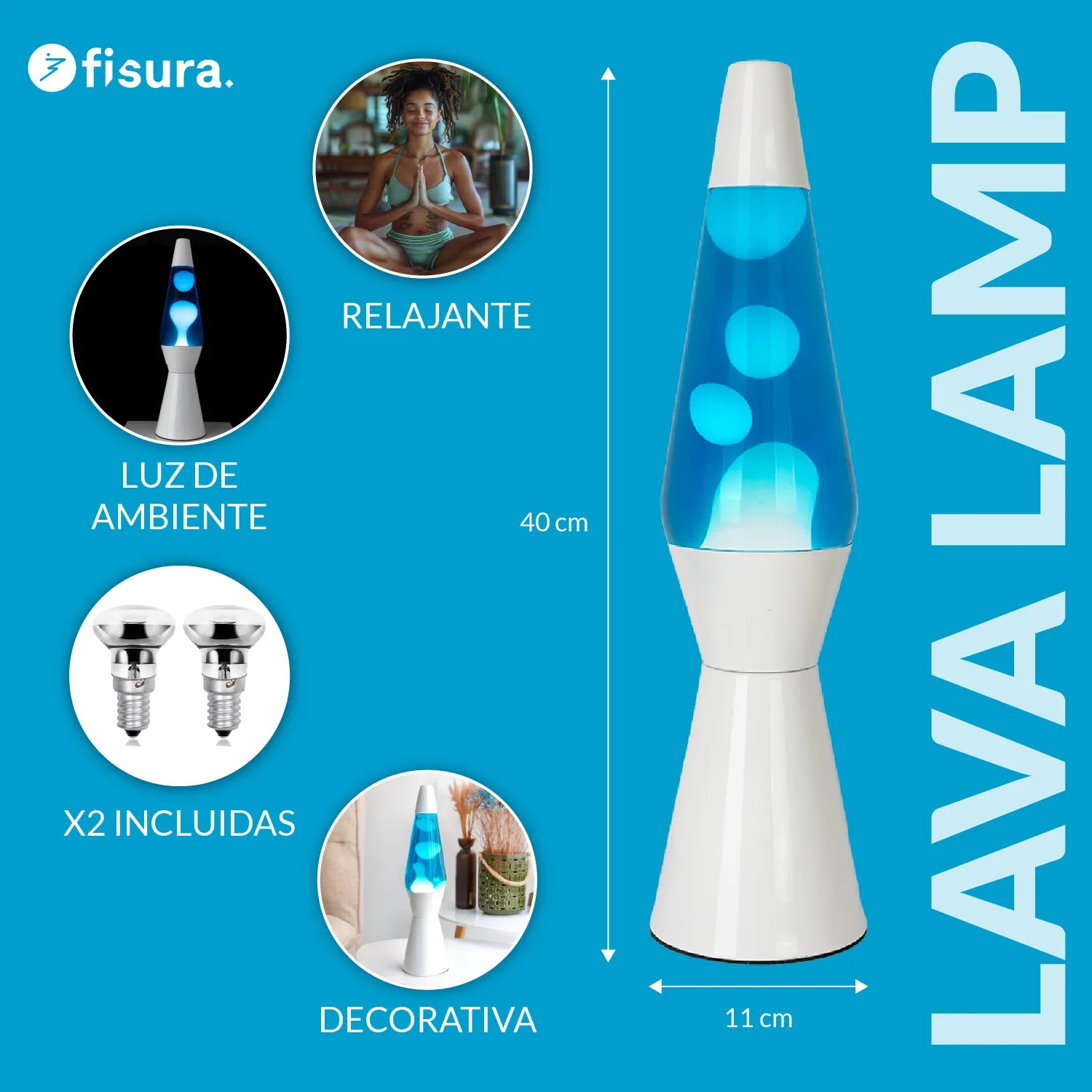 Con su combinación de azul y blanco, esta lámpara relajante es la aliada perfecta para tus momentos de desconexión. Solo enciéndela, relájate y deja que el hipnótico movimiento de la lava fluyendo transforme tu casa en un refugio de calma y tranquilidad tras un día agotador.