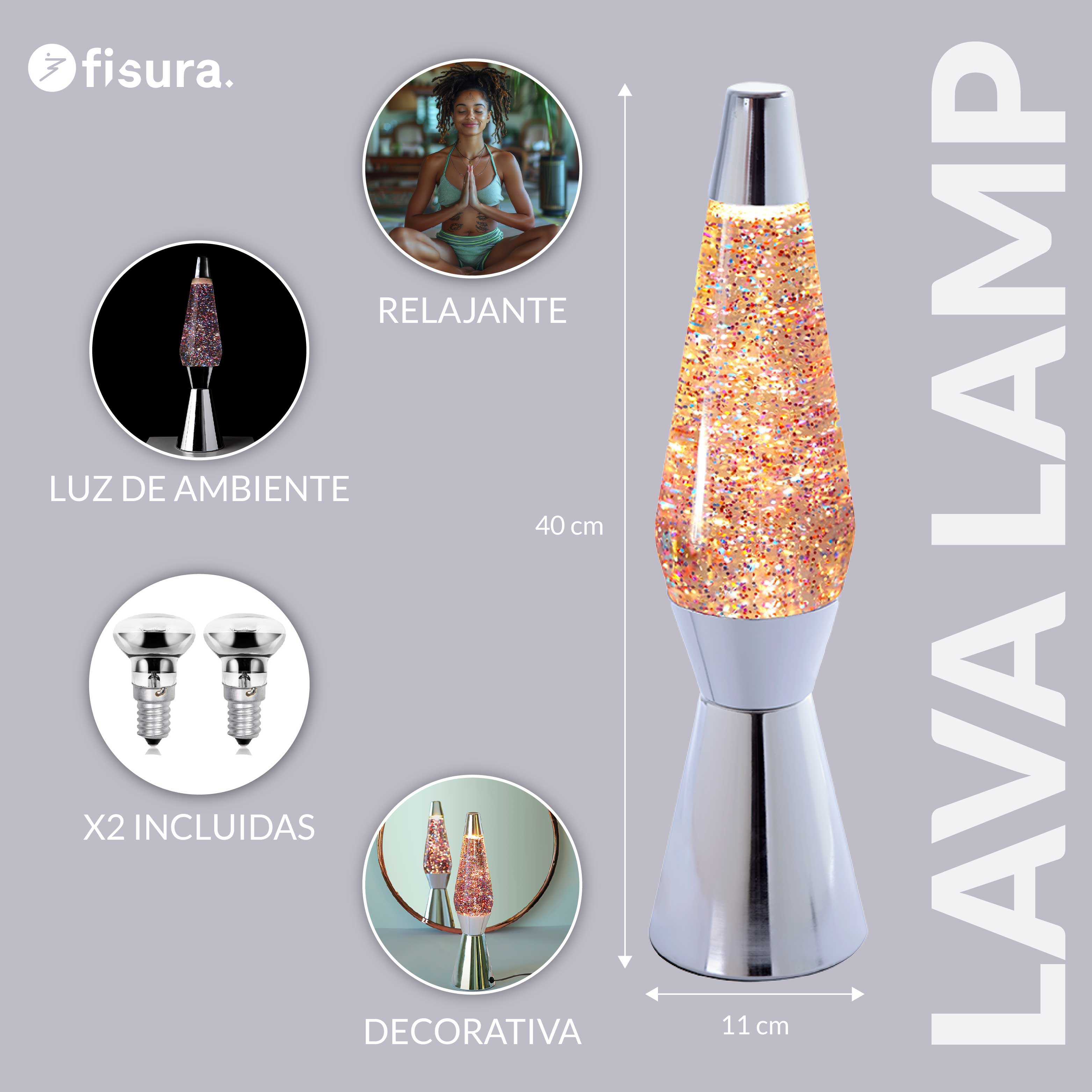 Lámpara de lava “Bullet” con purpurina y base cromada