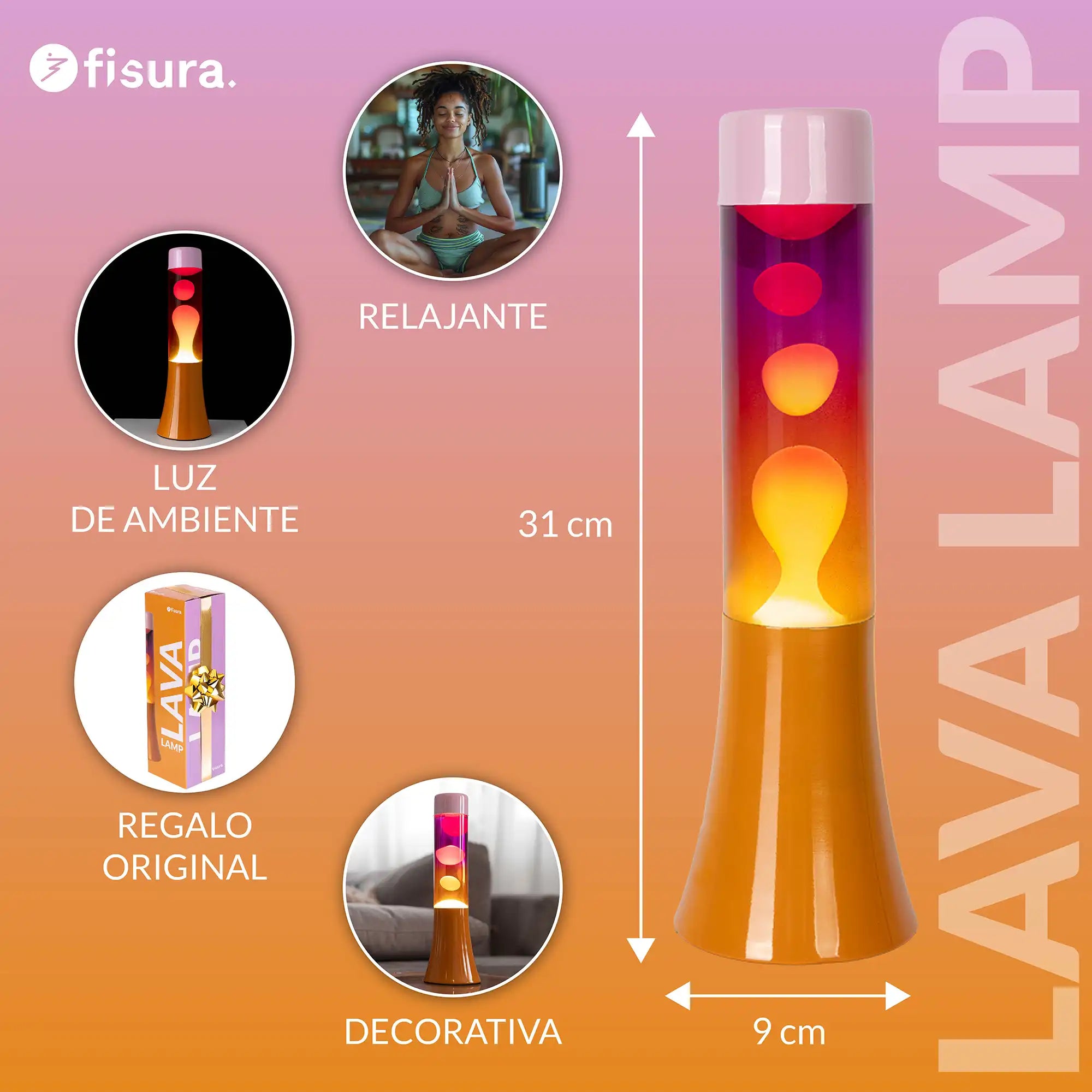Déjate llevar por el hipnotizante movimiento de la lava y sumérgete en un mundo de calma y armonía bajo su suave y relajante luz de ambiente. ¡Sus tonos rosa y naranja te envolverán en un amanecer 🌅 lleno de energía y vitalidad!