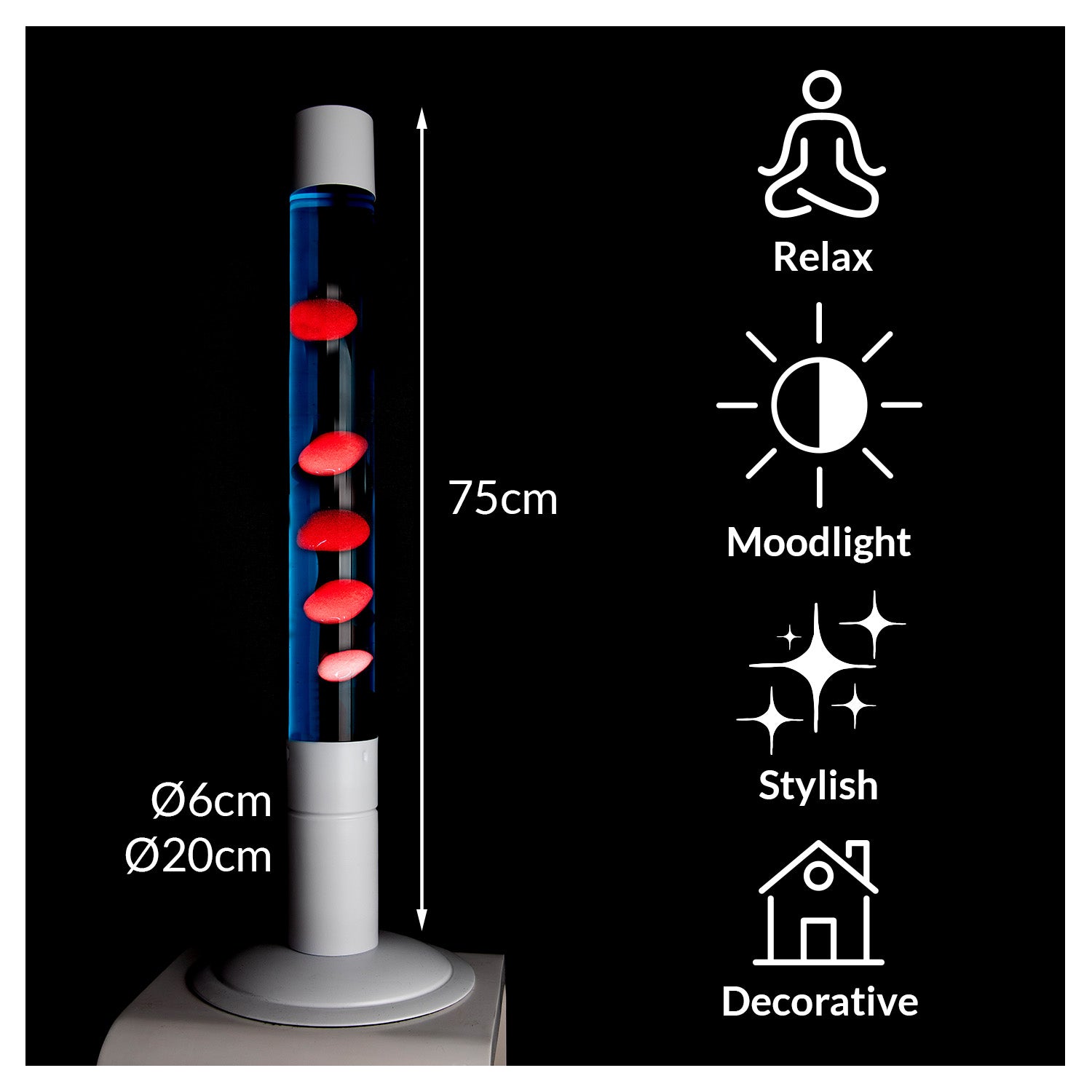 Relájate con la luz de ambiente de esta lámpara de lava y déjate sorprender con el movimiento de la cera subiendo y bajando. ¡Es el accesorio que necesitas para llenar tu casa de personalidad, magia y color al más puro estilo de los años 70!