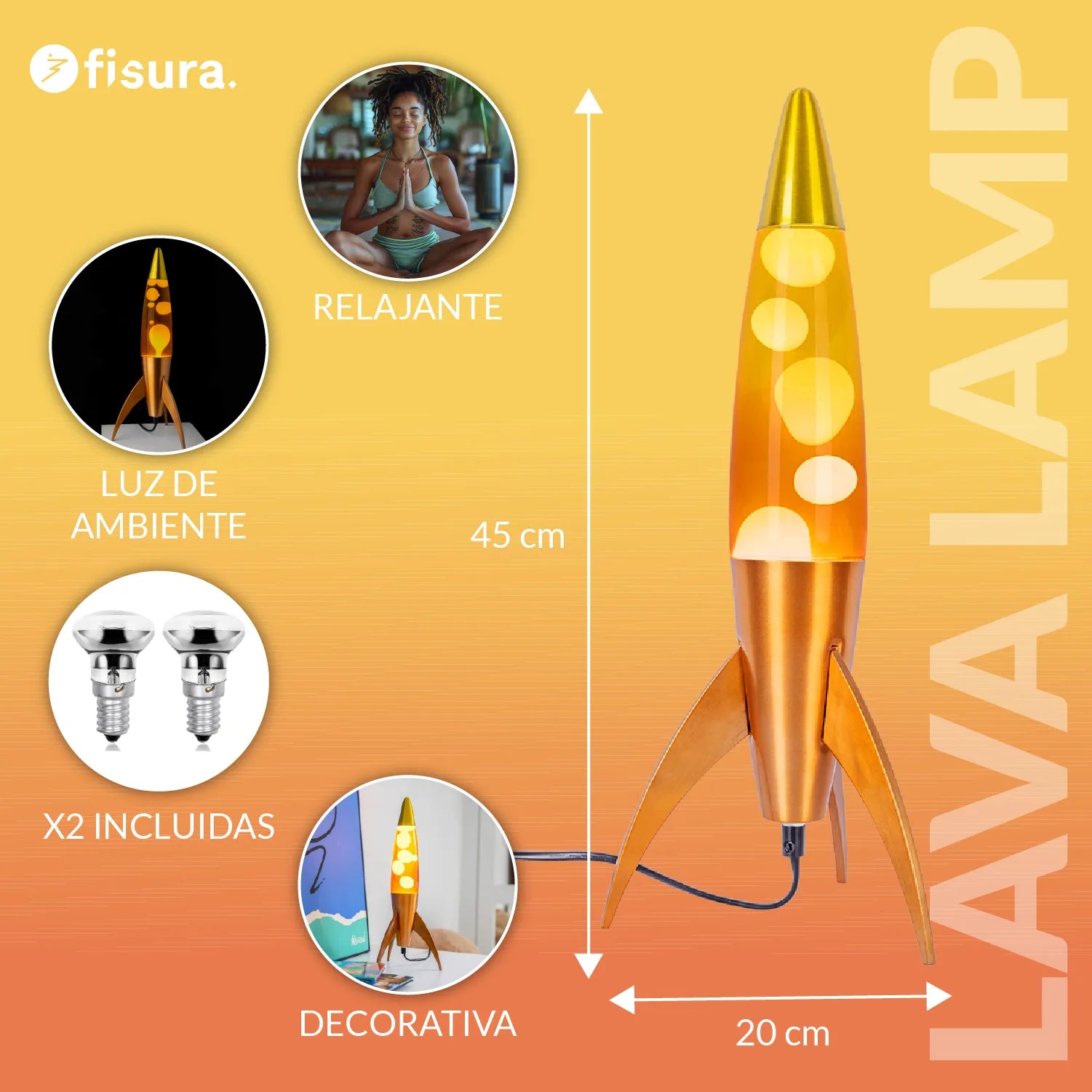 ¡Prepárate para un viaje estelar con esta lámpara de lava en forma de cohete🚀! Con su degradado esta lámpara de lavanaranjate transportará a un amanecer en la playa mientras disfrutas del relajante movimiento de lava desde tu sofá.