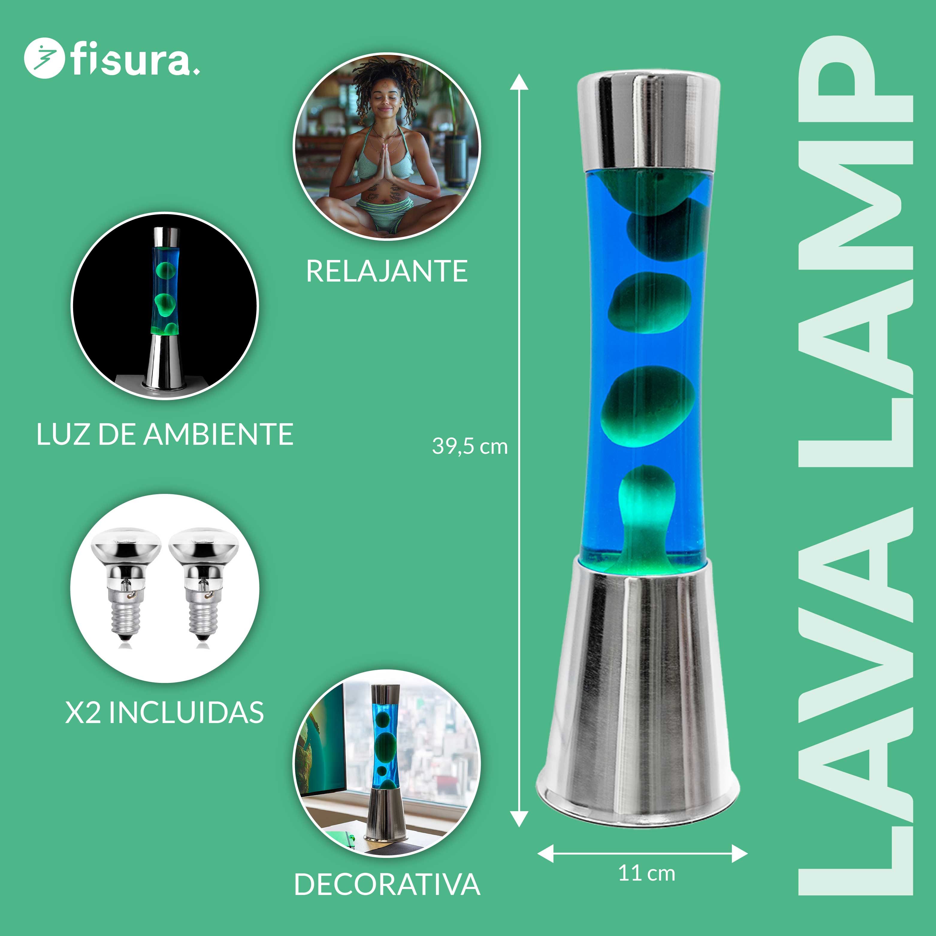 ¡Transforma tu hogar en un oasis de frescura y calma con esta lámpara de lava verde y azul! Con su agradable luz y el movimiento de la lava esta lámpara de ambiente te envolverá en una atmósfera relajante que te ayudará a desconectar de la rutina.