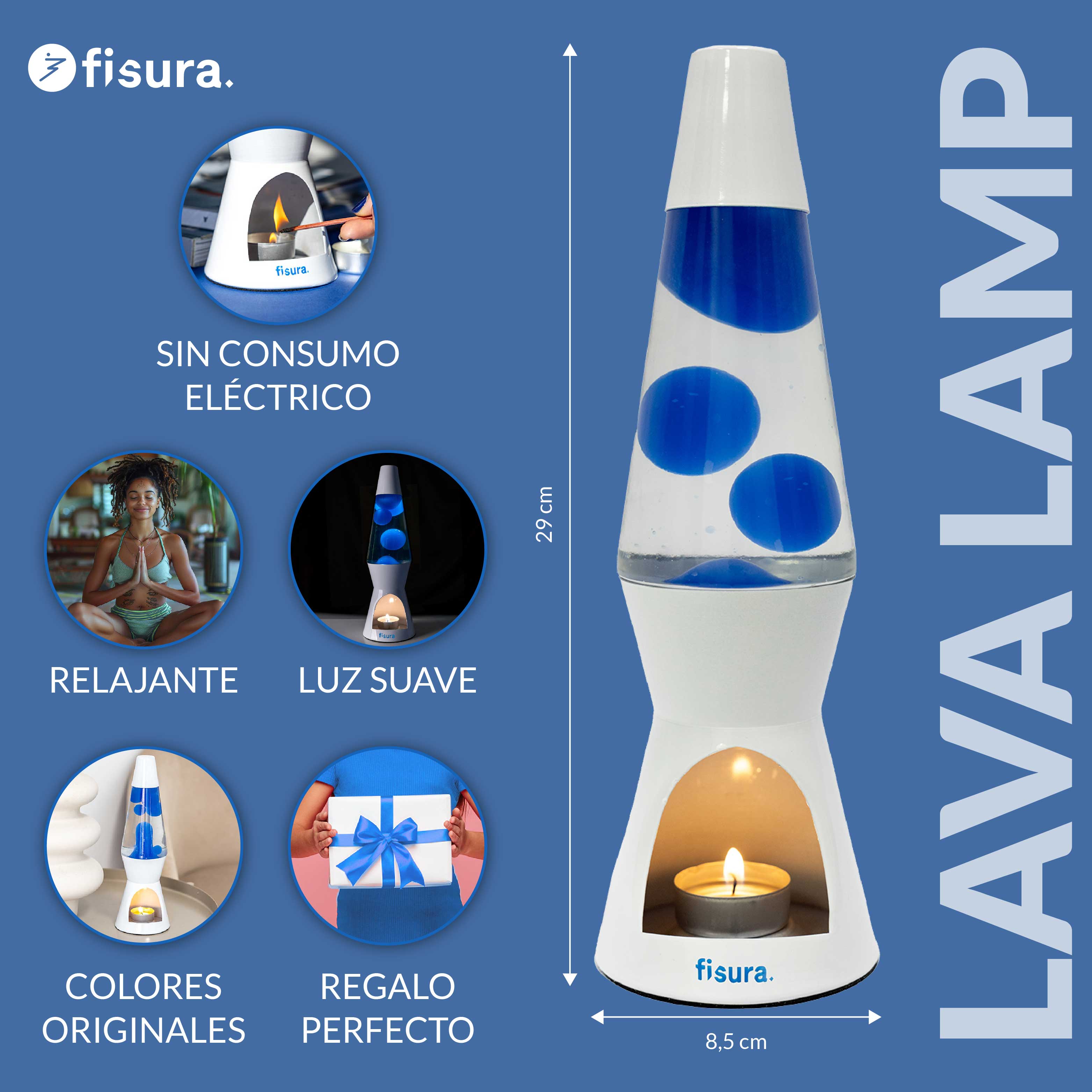 Olvídate del gasto energético y sumérgete en el hipnotizante movimiento de la lámpara de lava que funciona con una vela🕯️. Incluye 4 velas de té para que puedas disfrutarla desde el primer momento, pero puedes personalizar la experiencia aún más utilizando las velas de té de tu aroma favoritas y tendrás una experiencia aún más única.