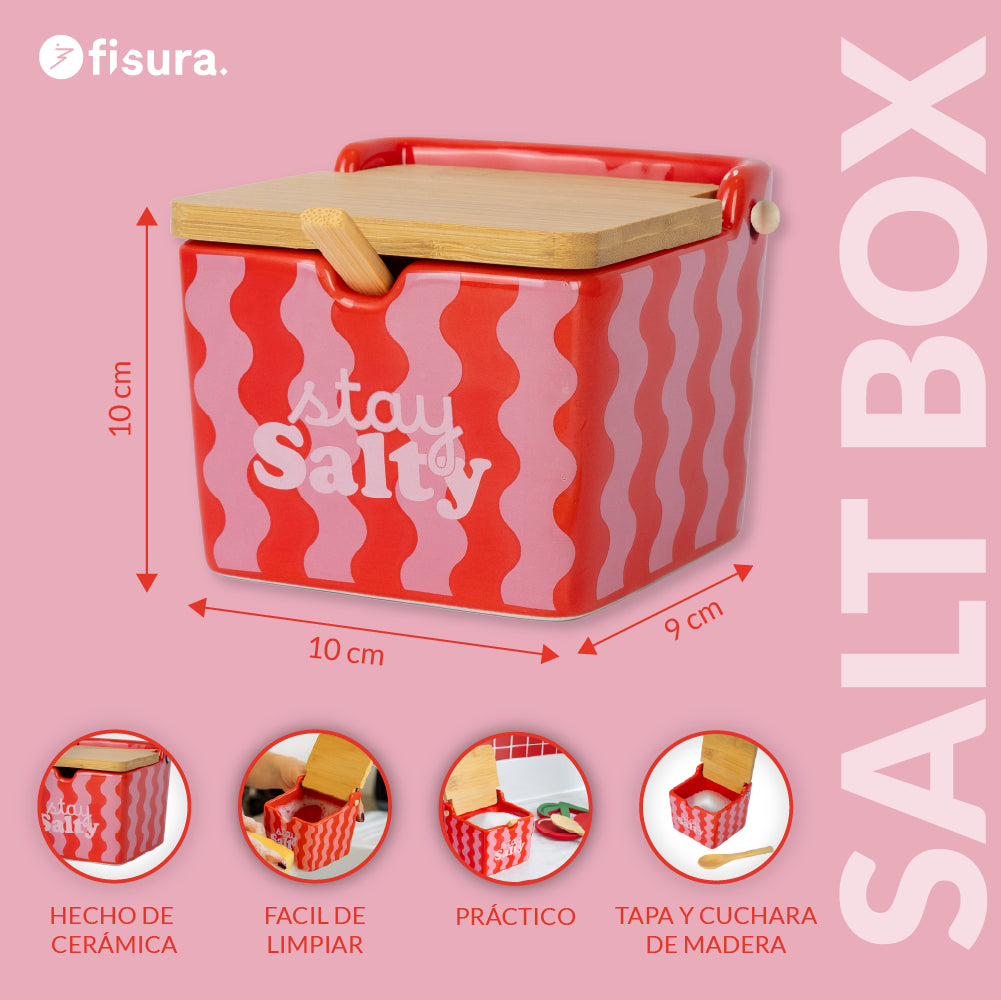 Este salero de cocina original con ondas rosas y rojas y el mensaje “stay salty” no solo guarda la sal… también es un recordatorio de que la vida, como la comida, necesita su puntito salado para ser más divertida 😏.