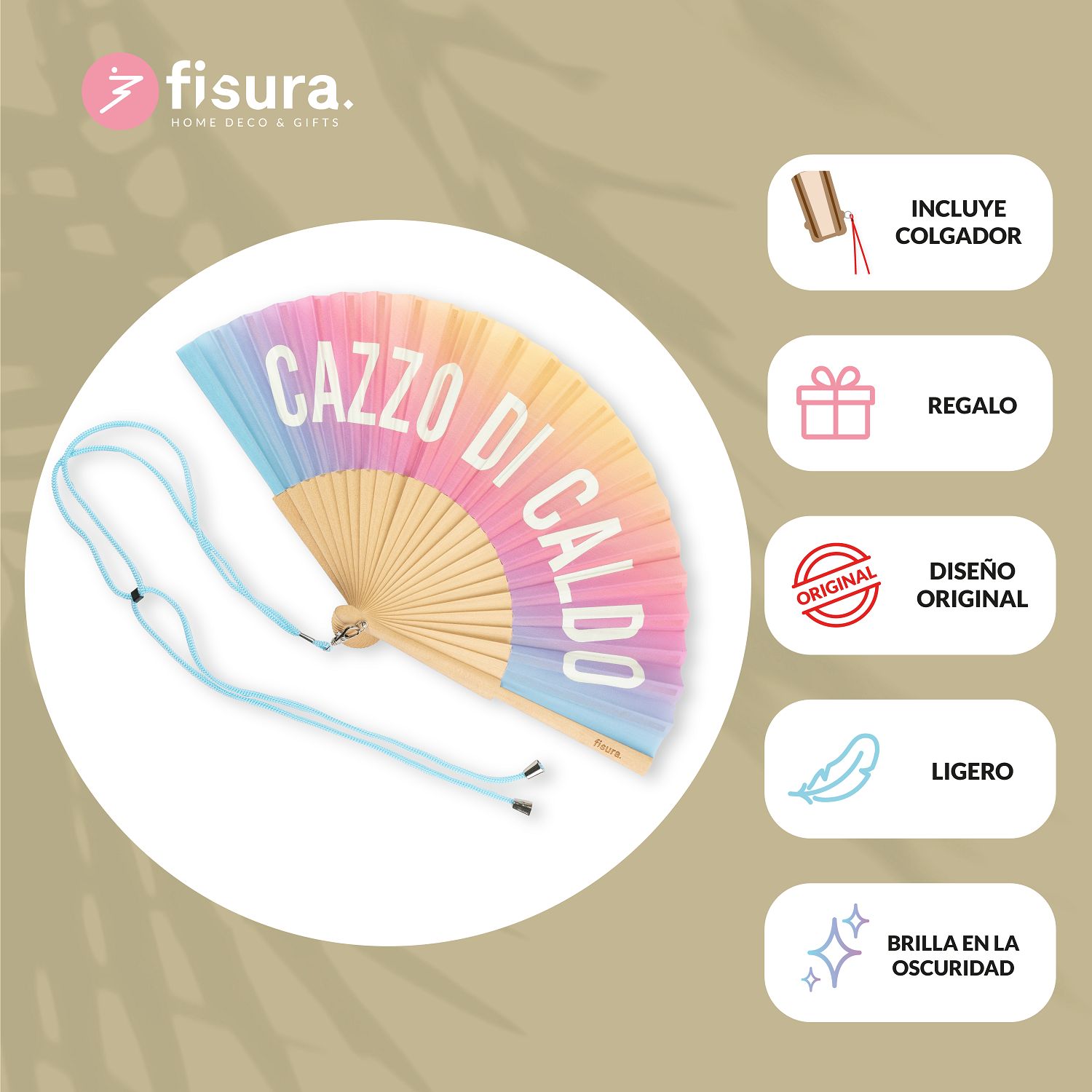 Sus tonos degradados le darán a tus outfits un toque de color muy veraniego y divertido. Lo mejor de todo: ¡brilla en la oscuridad!✨, por lo que este abanico original es ideal para las noches de verano en las que los termómetros no dan tregua. Además, incluye un práctico colgador para que puedas tenerlo siempre a mano y que no se te pierda ni se te olvide.