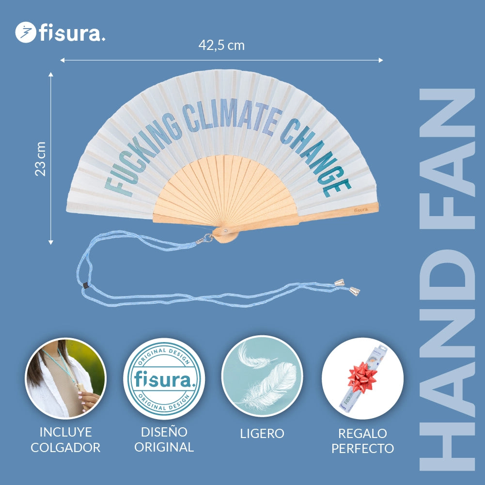 Cada verano el calor aprieta más y no es simple coincidencia… ¡El planeta nos está mandando señales 🔥! Con este abanico con el mensaje "fucking climate change" no solo te refrescarás, sino que también lanzarás a todos los que te vean una indirecta (muy directa) de que el planeta necesita ayuda urgente. ¡Y no solo el mensaje es importante, también los materiales! Es un abanico de madera de bosques gestionados de forma sostenible y textil con el que tu lucha contra el cambio climático cobrará aún más sentido.
