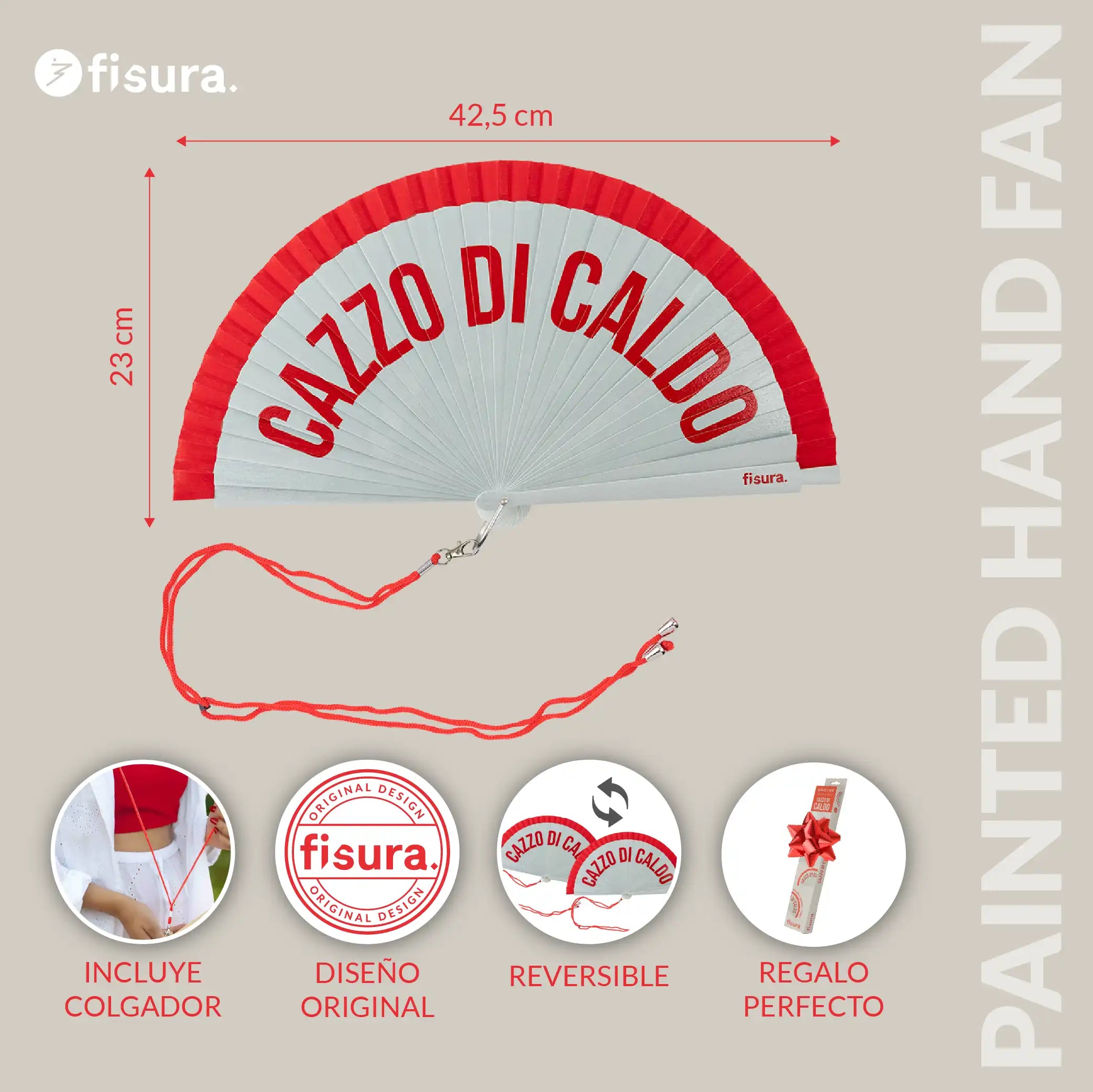 ¿Cómo no vas a estar harto del puto calor? No duermes bien, el helado se te derrite, los mosquitos te devoran y un laaaargo etcétera. ¡Grítale al mundo que estás deseando que bajen las temperaturas con este abanico con el mensaje en italiano "cazzo di caldo"🥵!