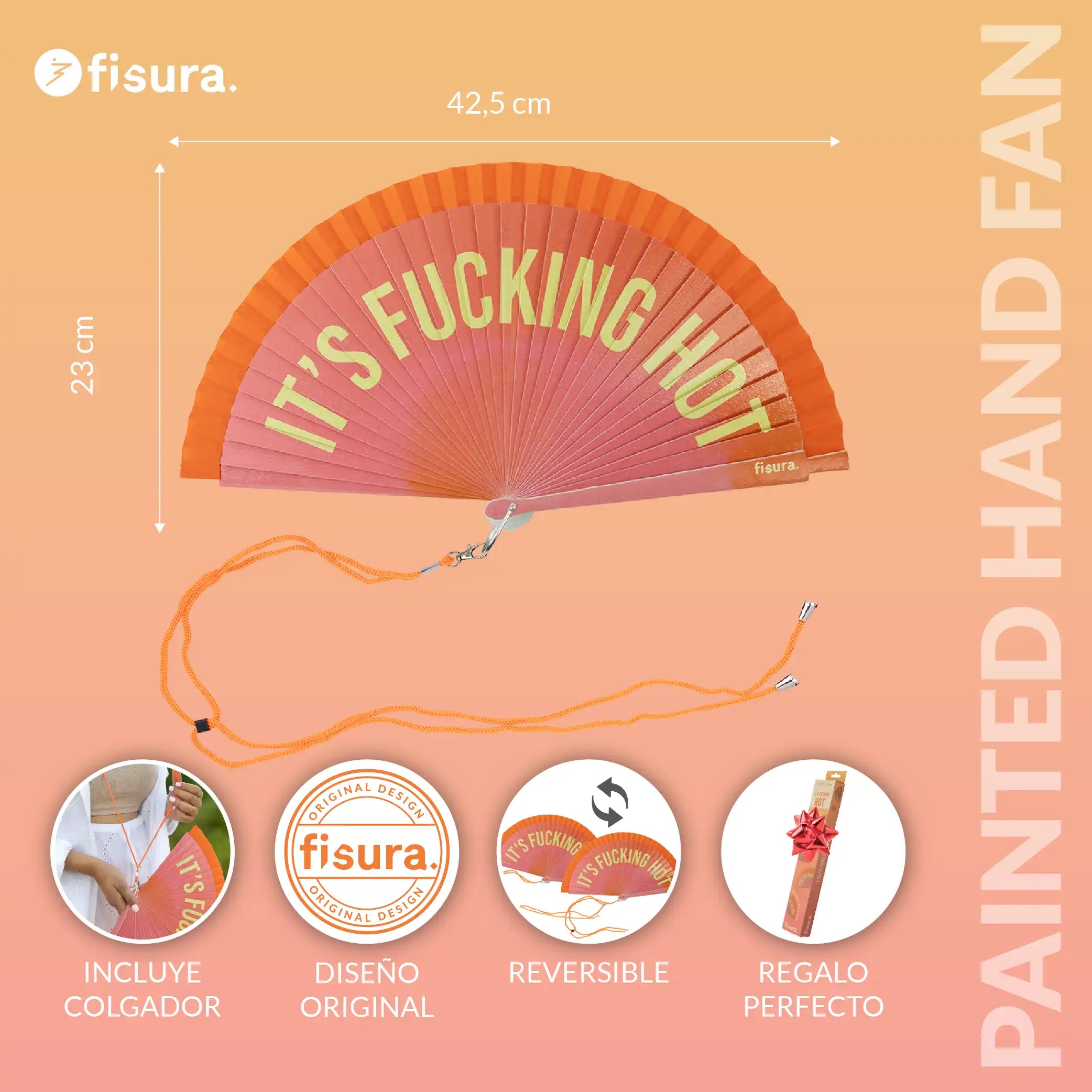 ¿Cómo no vas a estar harto del puto calor? No duermes bien, el helado se te derrite, los mosquitos te devoran y un laaaargo etcétera. ¡Grítale al mundo que estás deseando que bajen las temperaturas con este abanico con mensaje en inglés “It's fucking hot”🥵!