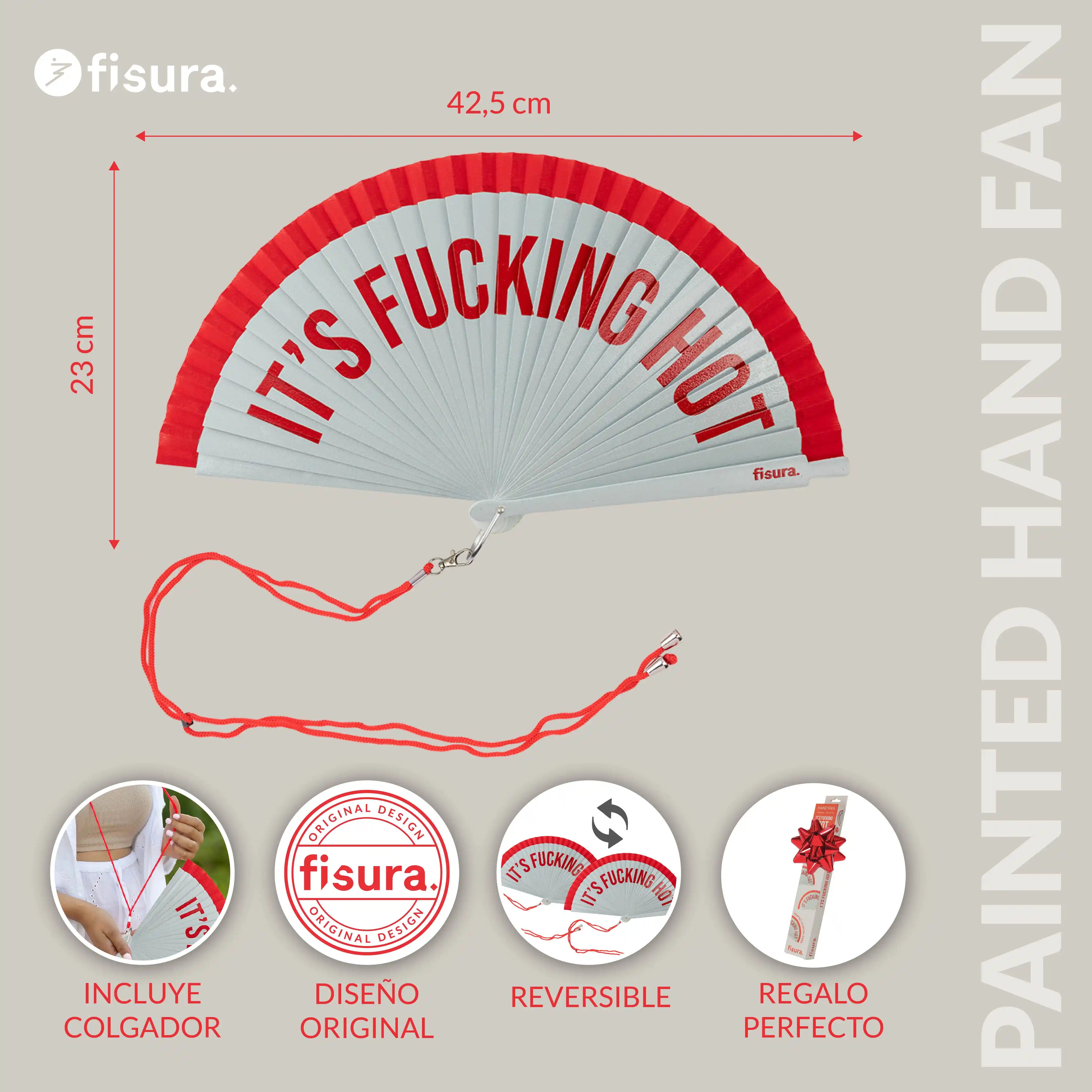 ¿Cómo no vas a estar harto del puto calor? No duermes bien, el helado se te derrite, los mosquitos te devoran y un laaaargo etcétera. ¡Grítale al mundo que estás deseando que bajen las temperaturas con este abanico con el mensaje en inglés "it's fucking hot"🥵!