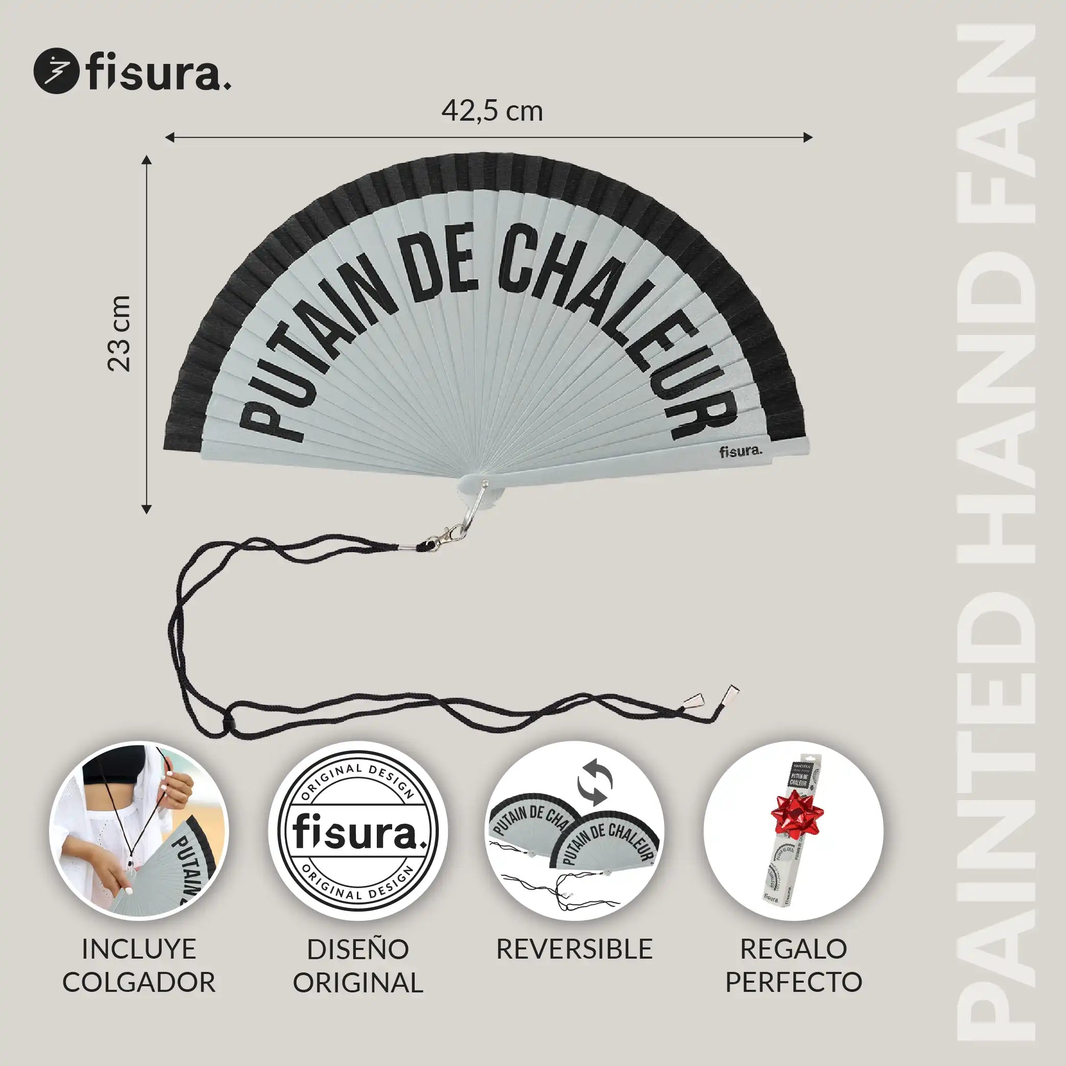 ¿Cómo no vas a estar harto del puto calor? No duermes bien, el helado se te derrite, los mosquitos te devoran y un laaaargo etcétera. ¡Grítale al mundo que estás deseando que bajen las temperaturas con este abanico con mensaje en francés"putain de chaleur”🥵!