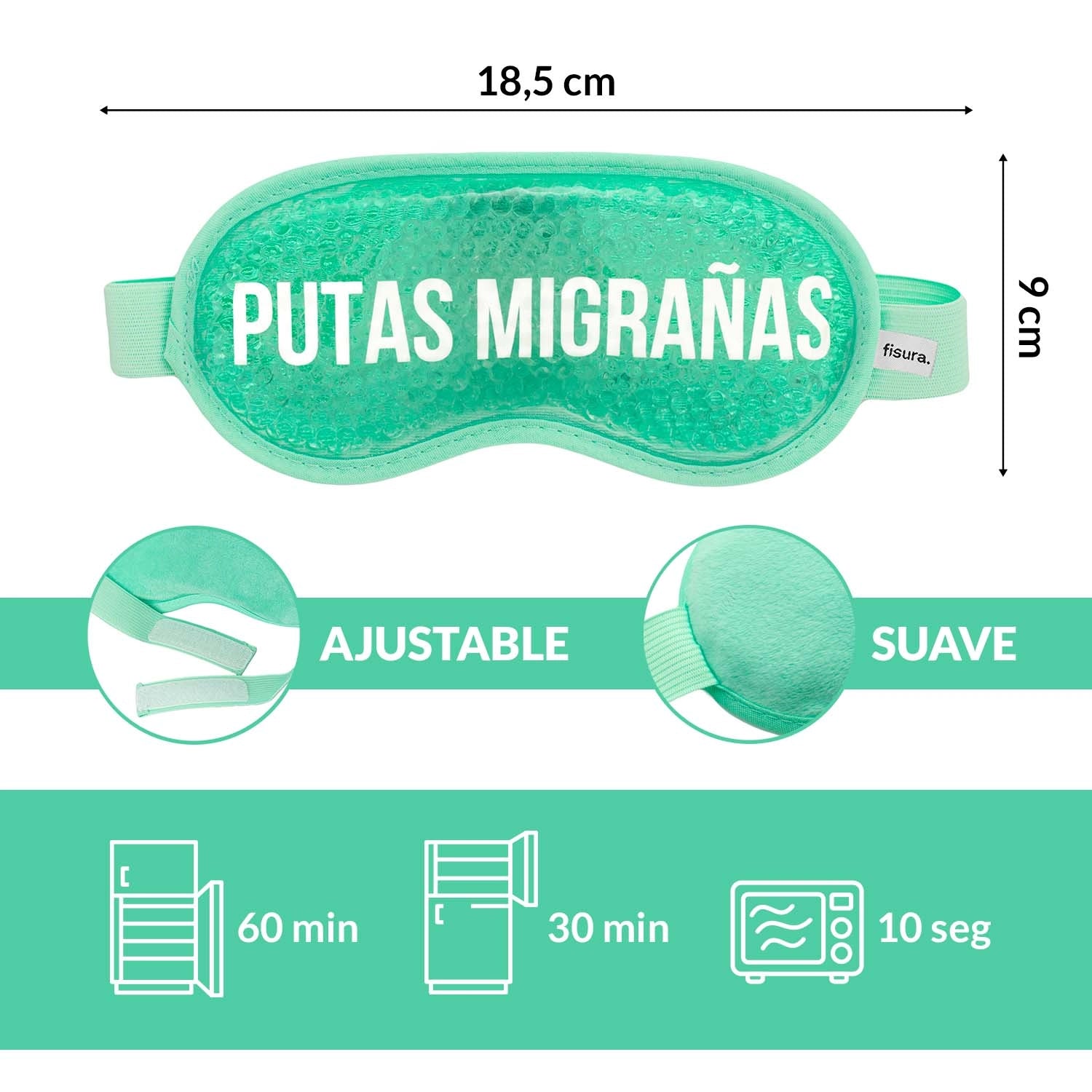 Antifaz de gel “Putas migrañas” verde menta