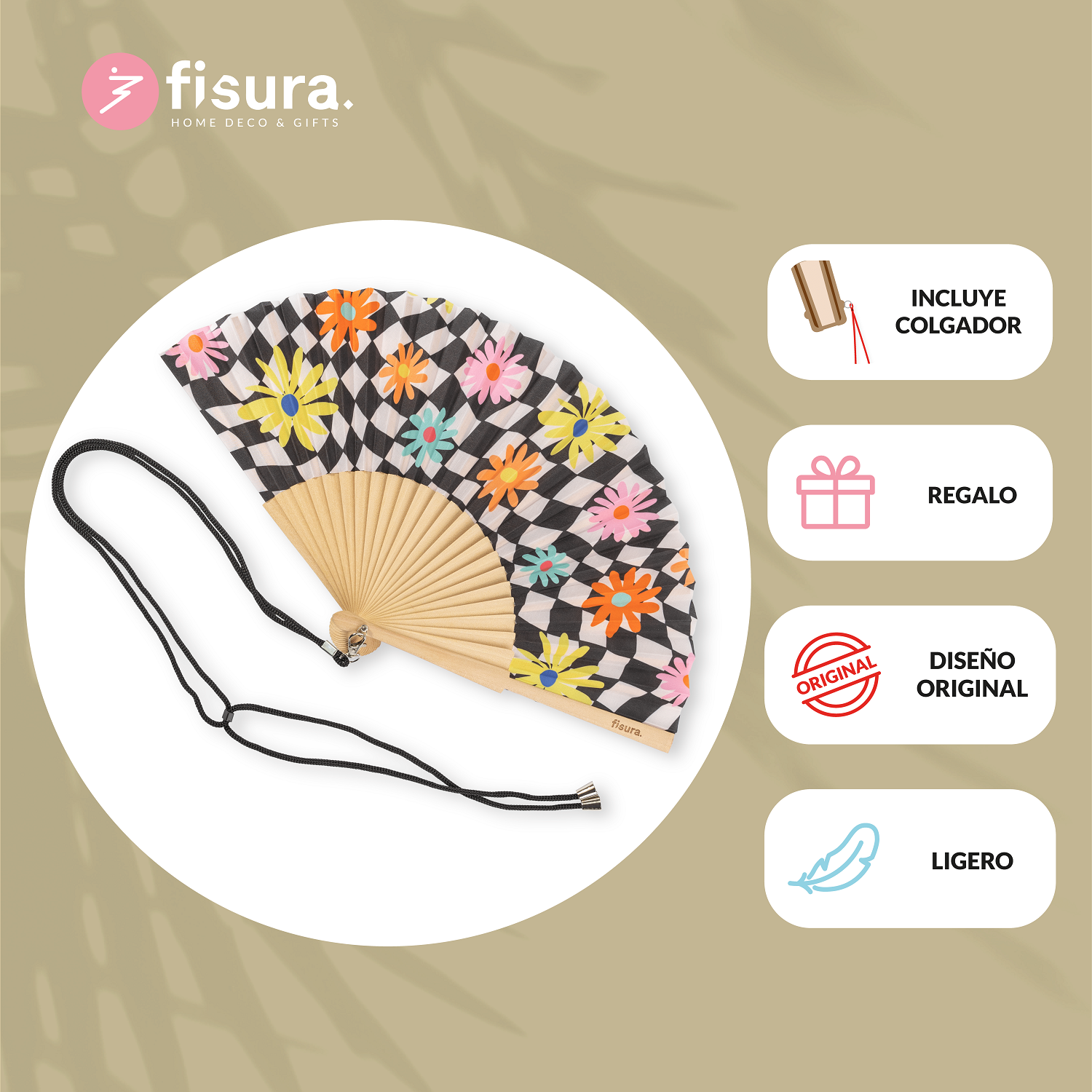 Combate el calor y retrocede en el tiempo con este abanico estampado de cuadros blanco y negro con flores 💐. Con un toque setentero, es el accesorio de verano imprescindible para darle a tus looks un aire retro y lleno de personalidad.