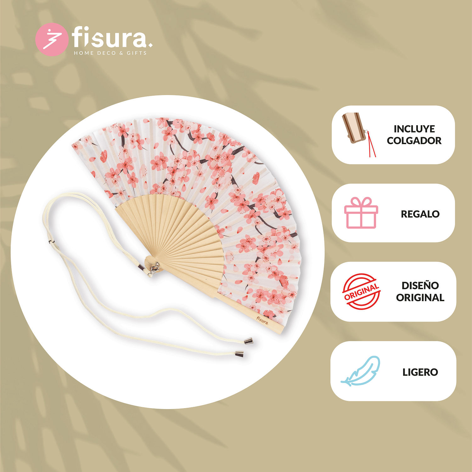 Enfréntate a la ola de calor y al sol que no para de brillar con este cómodo y fashion abanico blanco con estampado de flores de cerezo 🌸 que quedará genial con todos tus “looks” veraniegos. Además, incluye un práctico colgador para que puedas tenerlo siempre a mano y que no se te pierda ni se te olvide. ¡Cuélgatelo y olvídate de rebuscarlo en tu bolso o mochila 🎒 cuando necesites abanicarte!