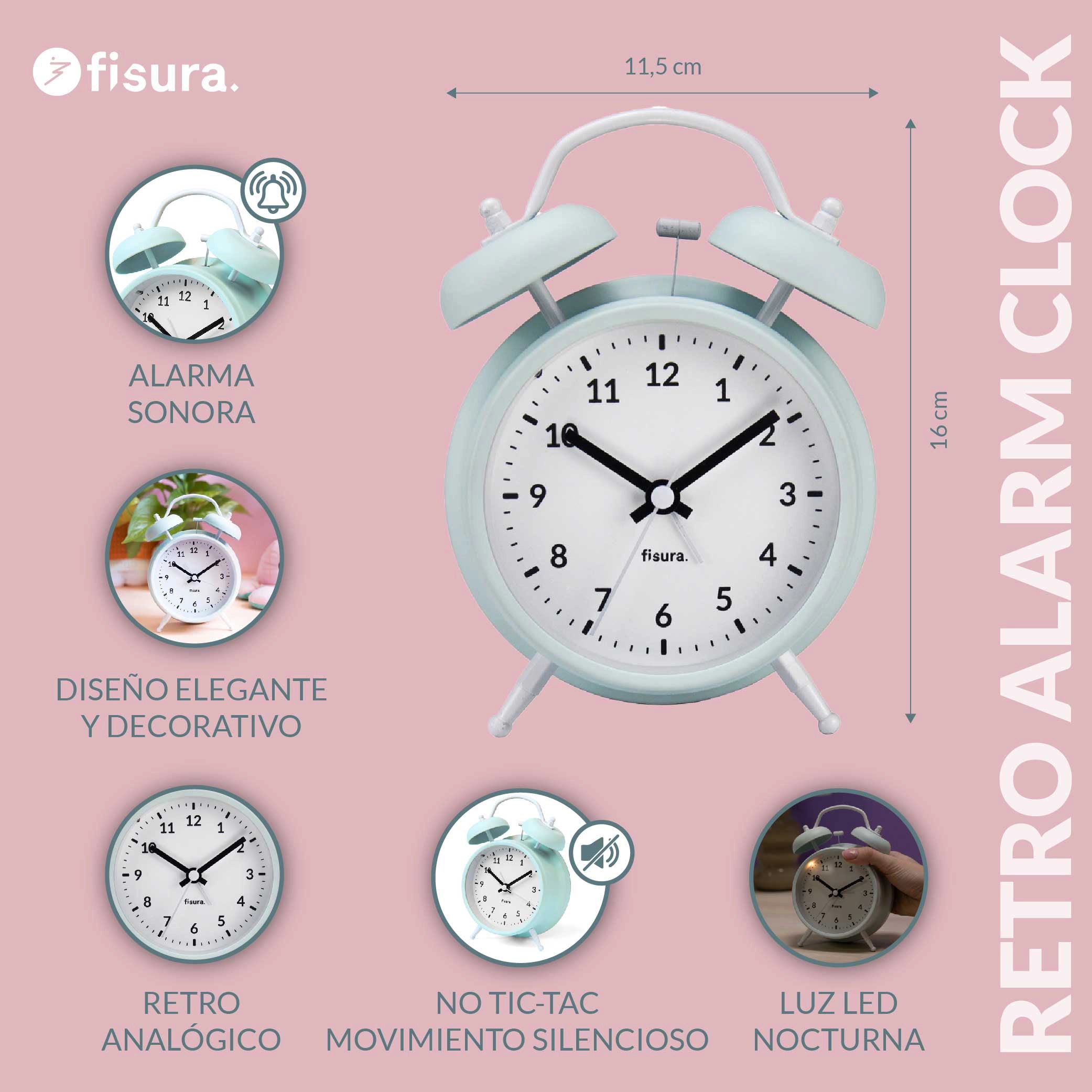 Reloj despertador Retro Menta & Blanco