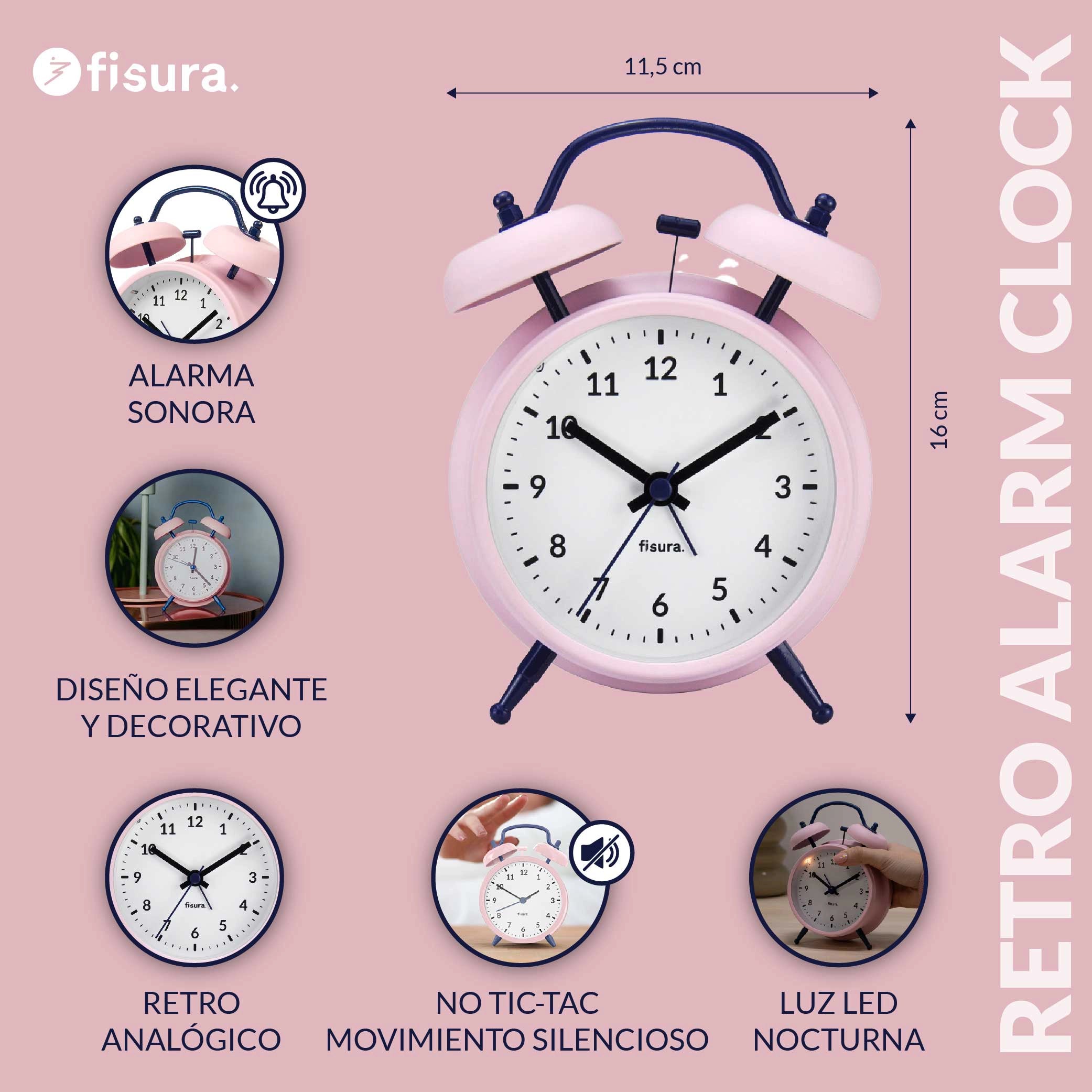 Reloj despertador Retro Rosa & Azul