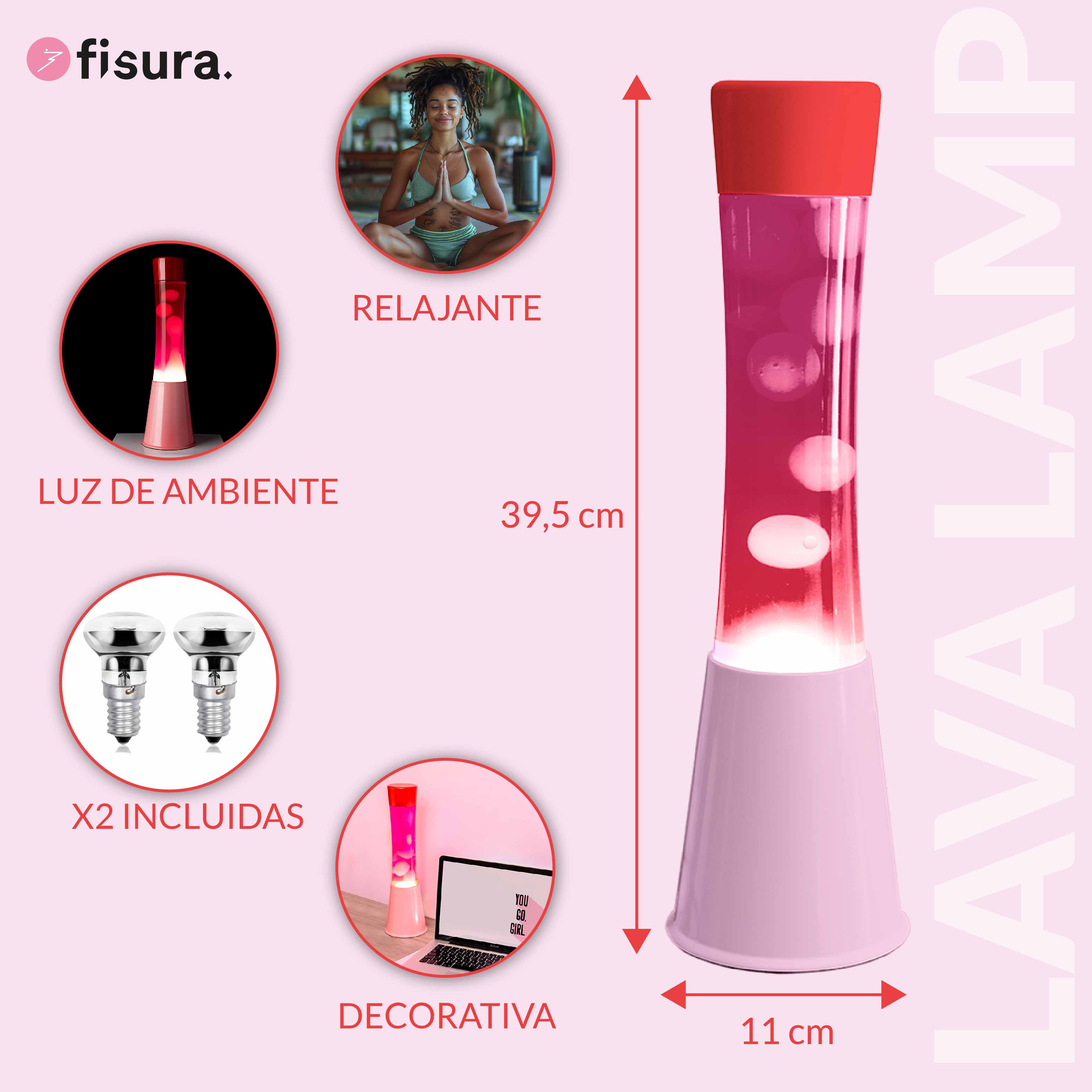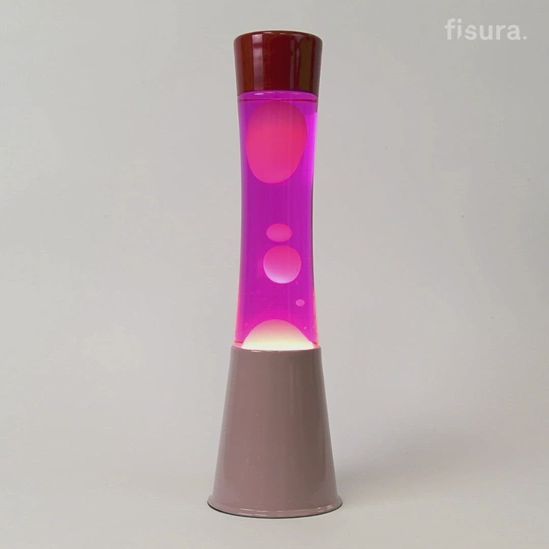 Lámpara de Lava base rosa con tapa roja, líquido rosa y lava transparente