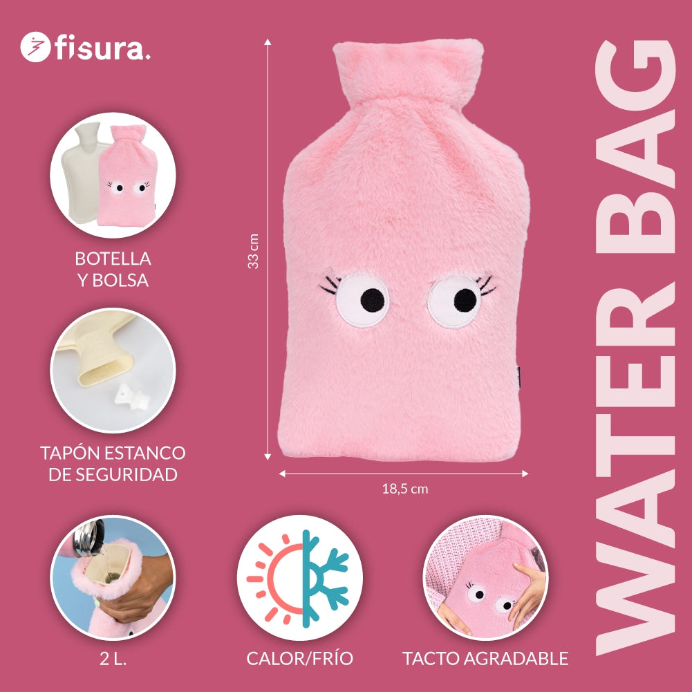 Deja que los ojitos curiosos te mimen mientras disfrutas de momentos acogedores gracias a su capacidad de 2 litros y a su suave funda de felpa rosa. ¡Enfrenta las bajas temperaturas con esta bolsa de agua original que se convertirá en tu aliada infalible 🔥!