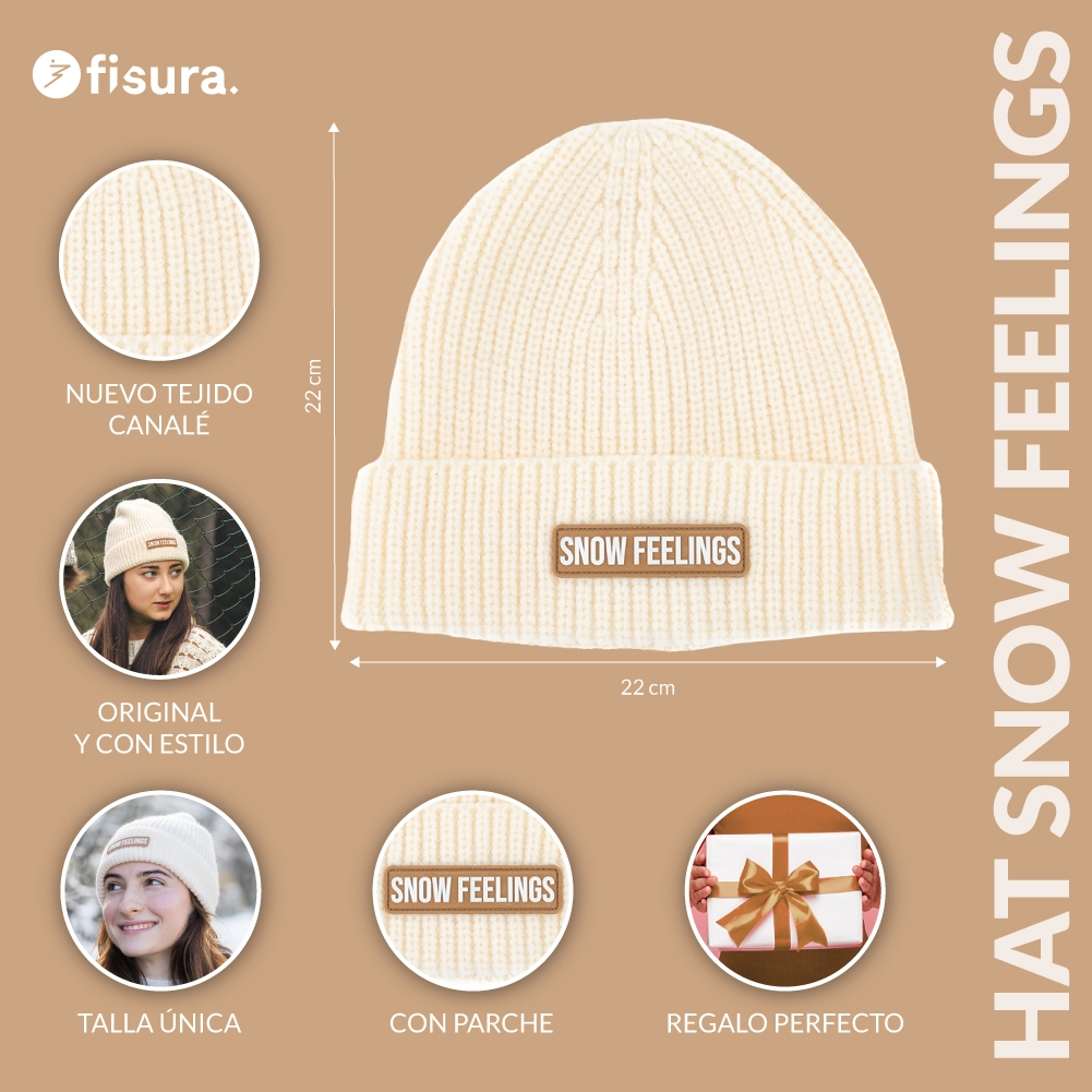 Refleja tu amor por la nieve con este gorro original con el mensaje “snow feelings con el que mantendrás tu cabeza calentita en los días más fríos❄️ con un toque de diversión.