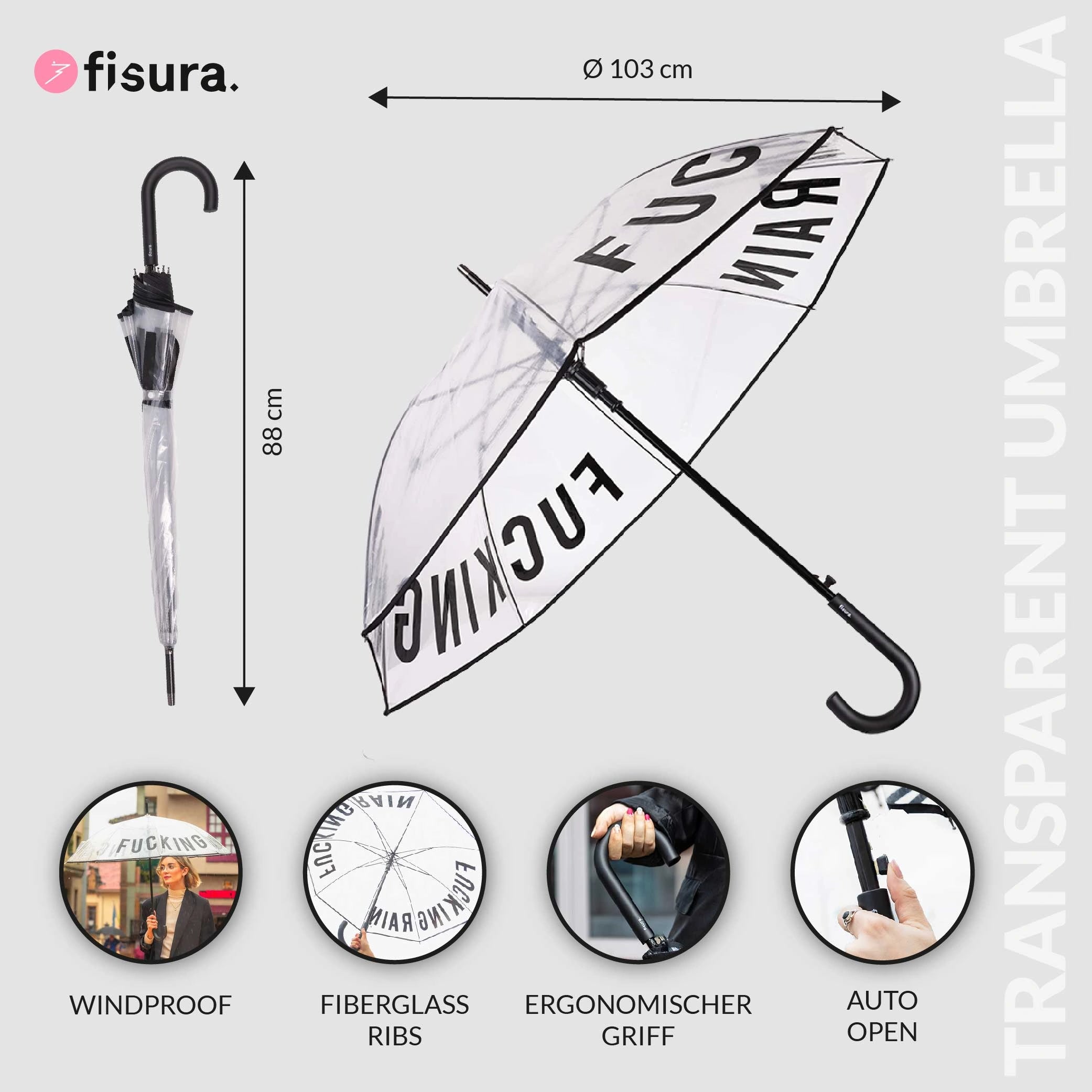 ¡Que la lluvia no estropee tus planes! Coge tu paraguas transparente grande con el mensaje “fucking rain” y camina bajo el agua sin perderte nada de lo que suceda a tu alrededor mientras dejas claro que odias el mal tiempo🌧️.