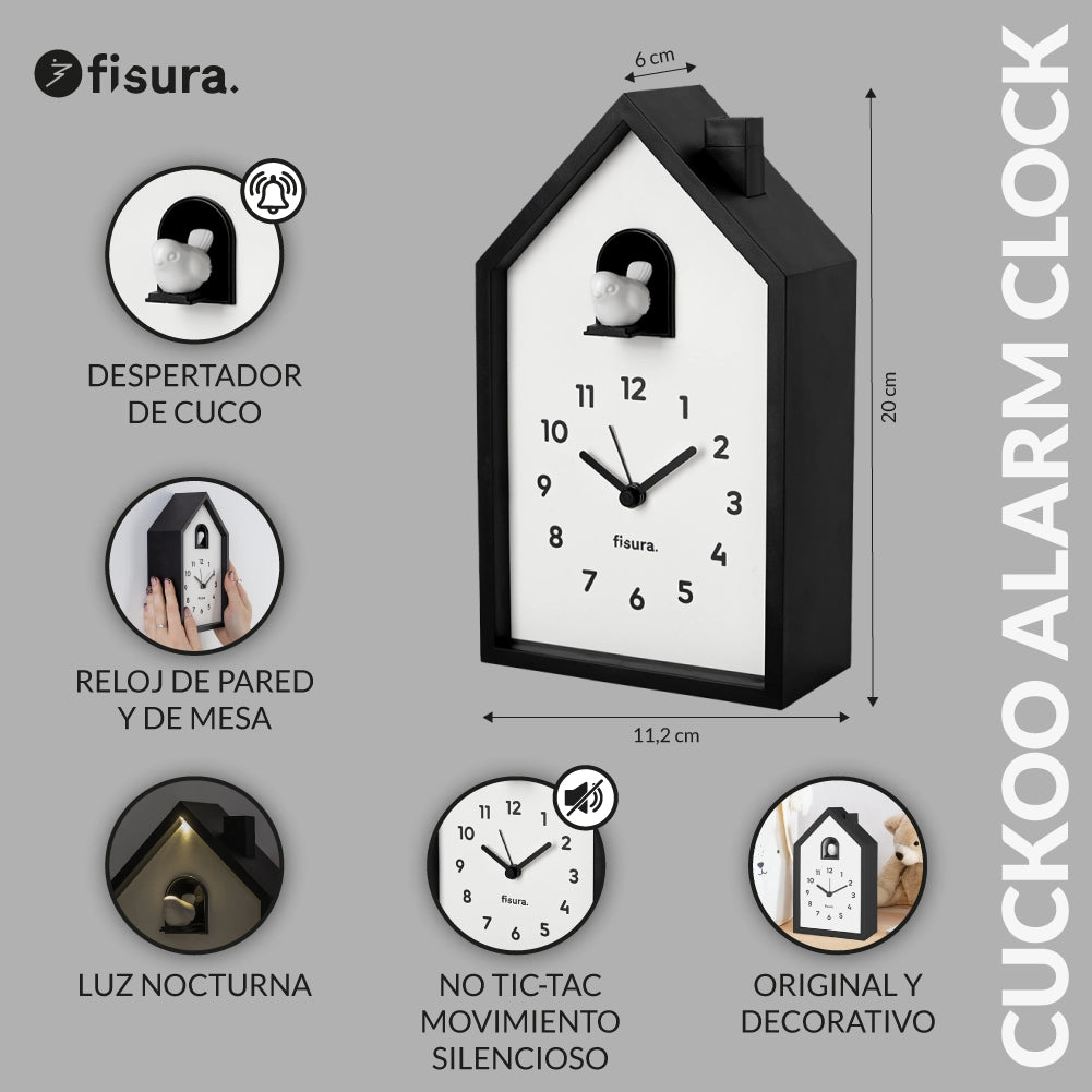 Con su diseño moderno y su color blanco y negro, este reloj de cuco no solo es funcional, sino que también le dará un toque de elegancia y originalidad a tu mesita de noche 🛏️.