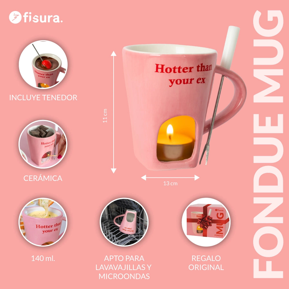 ¡Esta taza fondue con el mensaje “Hotter than your ex” 💕 se va a convertir en tu taza original favorita! Porque, seamos claros, tu ex podía darte un poco de vidilla… ¡pero no tanto como un chocolate derretido o una fondue de queso cremosa lista para mojar churros, fruta o galletas!