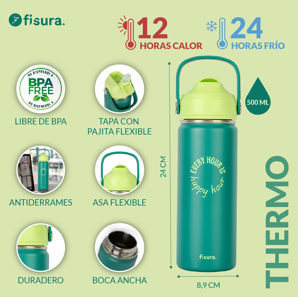 La botella de acero inoxidable con su una capacidad de 500 ml 💧 y su doble pared es ideal para mantener tus bebidas frías durante 24 horas 🧊 o calientes durante 12 horas 🔥. Desde agua, refresco hasta batidos o café, ¡siempre tendrás tu bebida favorita a la temperatura perfecta!