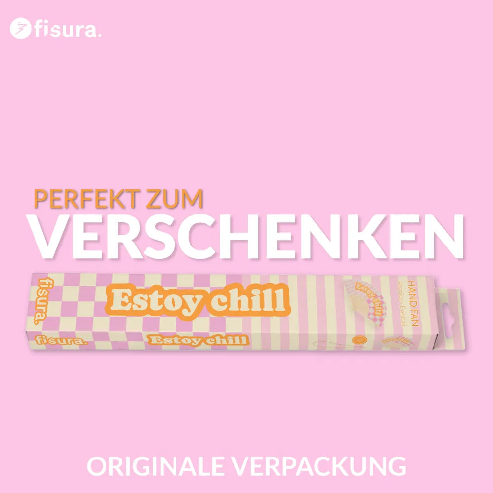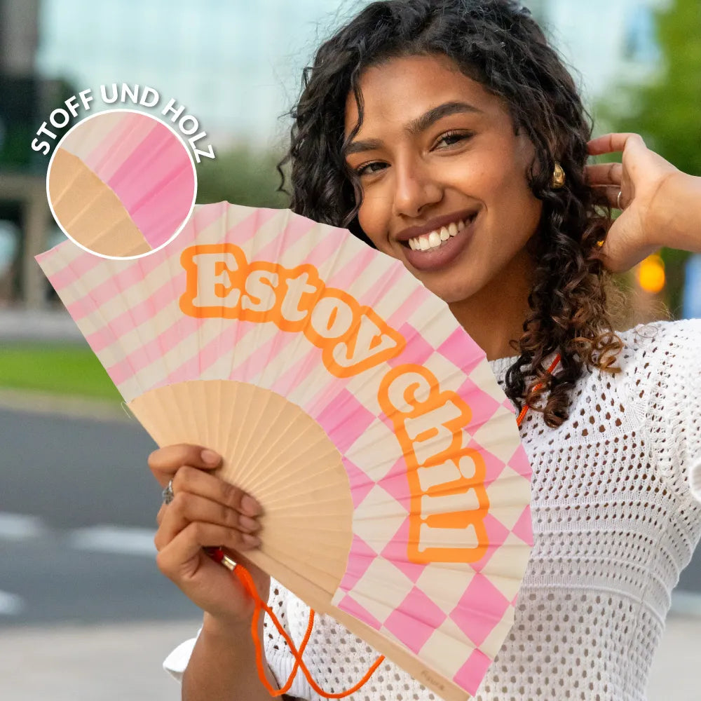 Wenn deine Haltung gerade eher „kein Drama, alles entspannt“ ist, passt dieser Handfächer mit dem Schriftzug „estoy chill“ dazu. Aufklappen und klar zeigen, dass du ruhig bleibst und die Dinge nacheinander angehst.