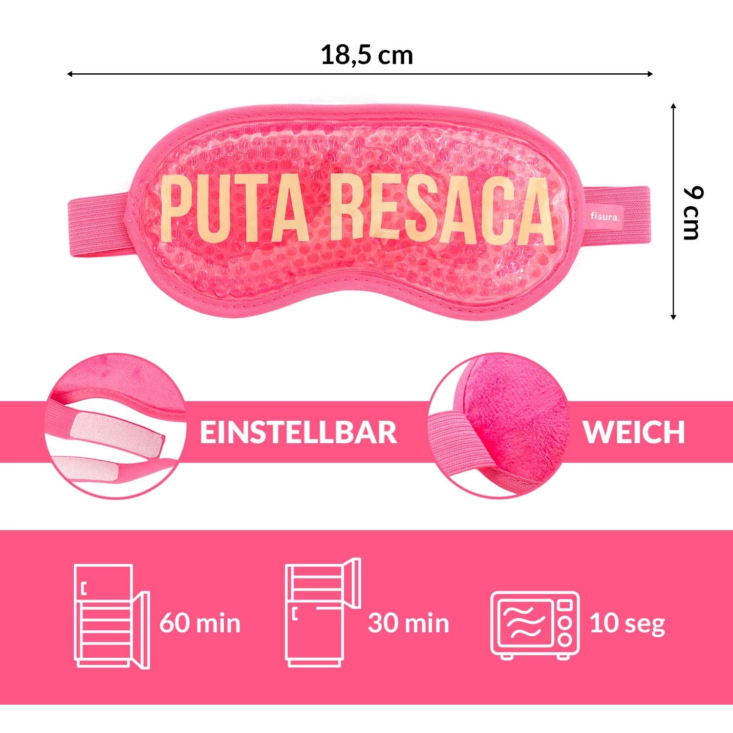 Durch die rosa Farbe und den Aufdruck „puta resaca“ ist sie als Geschenk für Freundinnen und Freunde geeignet, die gerne feiern.