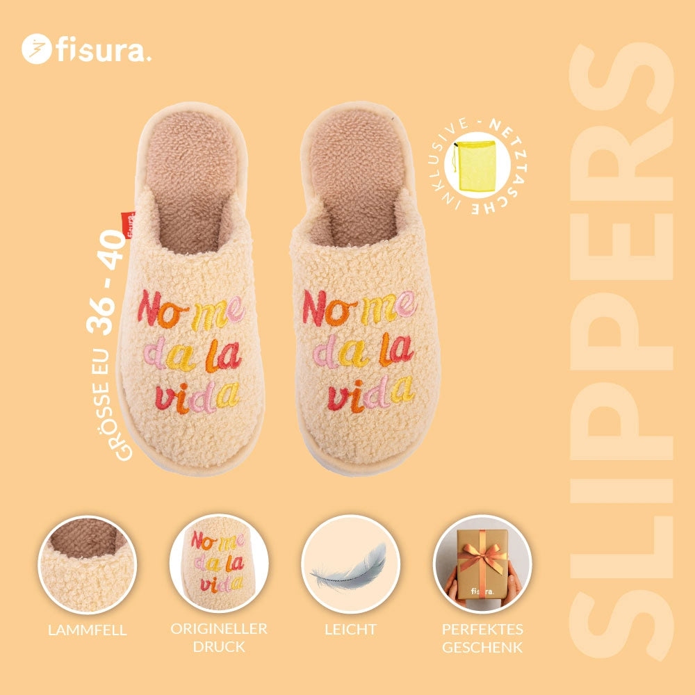 Diese Hausschuhe mit dem aufgestickten Spruch „no me da la vida“ zeigen, dass du selbst zu Hause viel in Bewegung bist. Geeignet für alle, die im Alltag ständig zwischen Einkaufen, Putzen und Wäsche hin- und herwechseln.