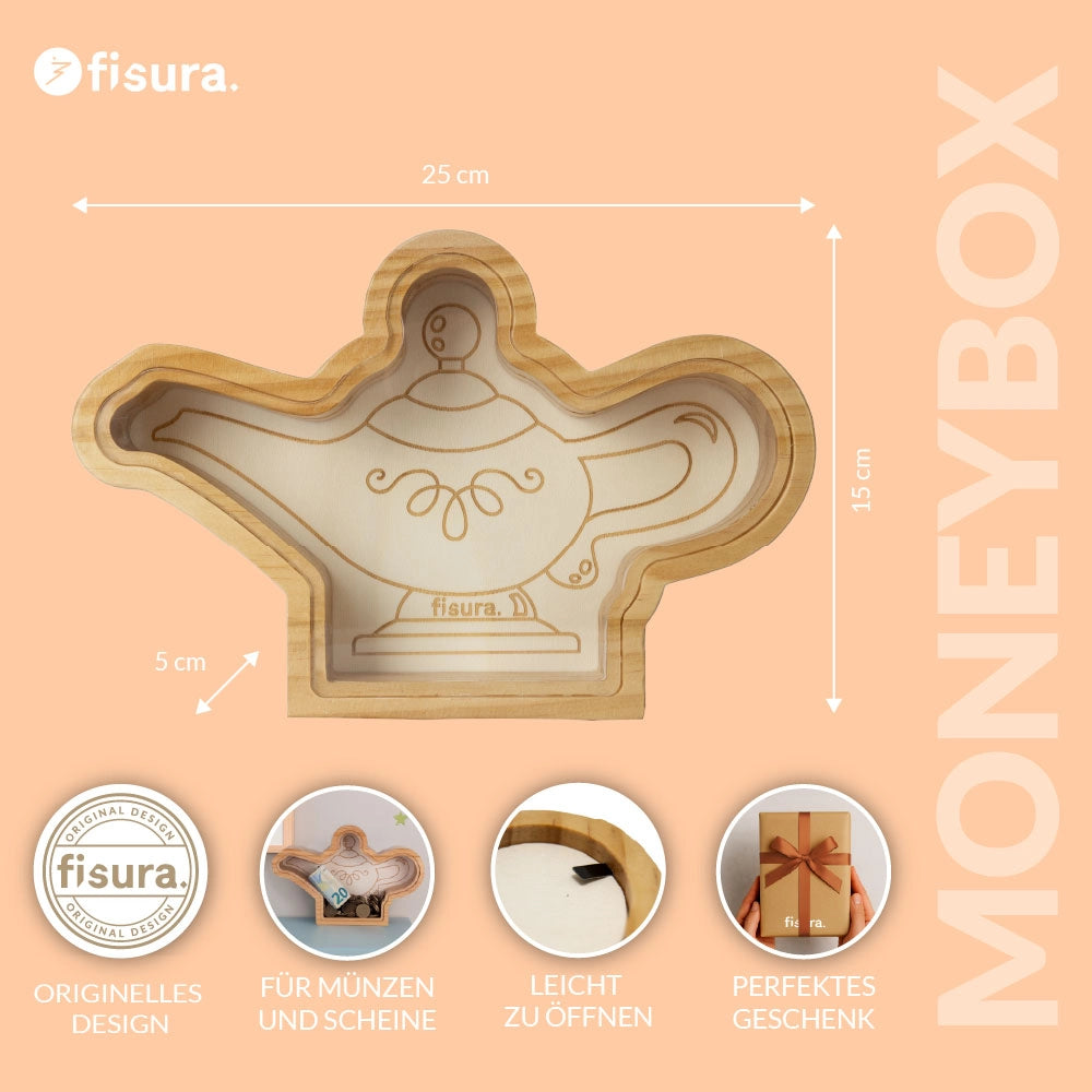 Holz-Spardose „Magische Lampe“