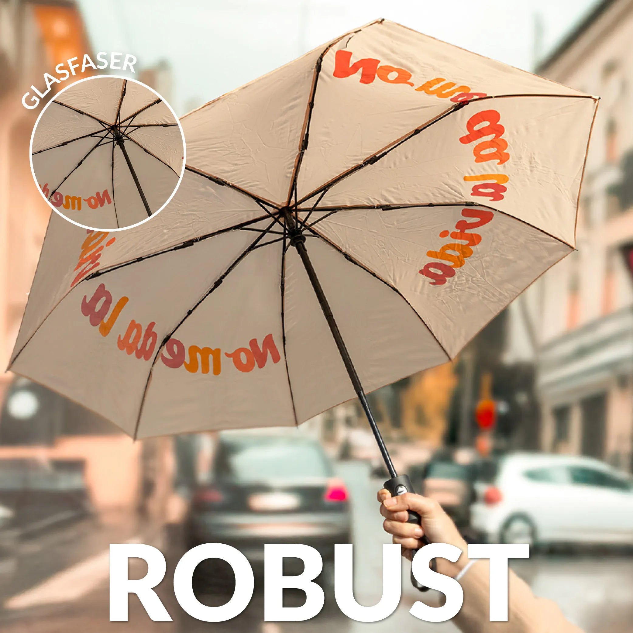 Wenn dein Tag ohnehin schon durchgeplant ist und es dann auch noch anfängt zu regnen, wird dieser kompakte Regenschirm mit dem Aufdruck „no me da la vida“ zu einem funktionalen Begleiter im Alltag. Zwischen Terminen, Besorgungen und vielen Aufgaben sorgt er dafür, dass du nicht durchnässt unterwegs bist.