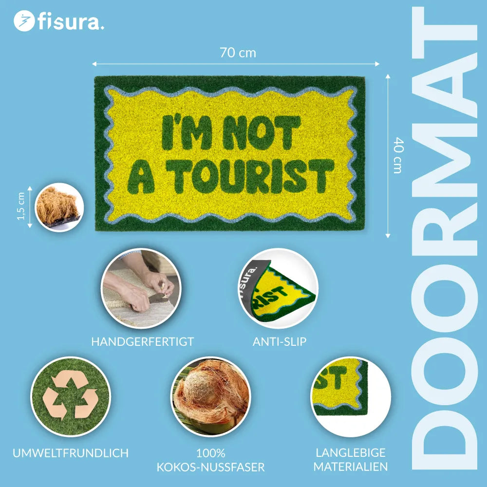 Setze ein klares Statement mit dieser Fußmatte mit dem Aufdruck „I’m not a tourist“. Sie zeigt, dass du dein Viertel kennst, dich im Stammcafé auskennen und dich ohne Navigationshilfe bewegst. Auch wenn du in einer Feriengegend mit Hotels und Ferienwohnungen wohnst, machst du deutlich, dass du kein Tourist bist.