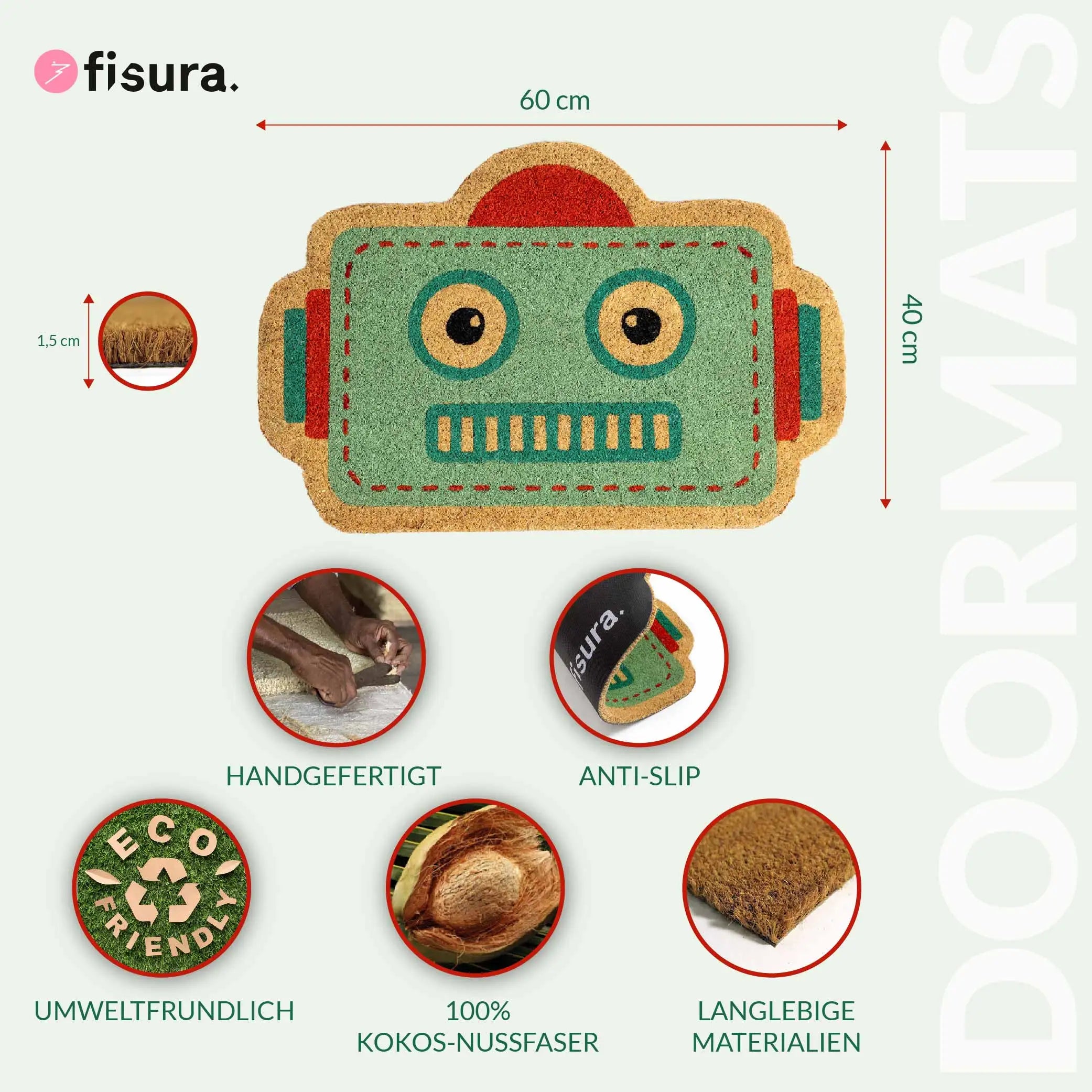 Materialien: Kokosfaser und rutschhemmende Unterseite.