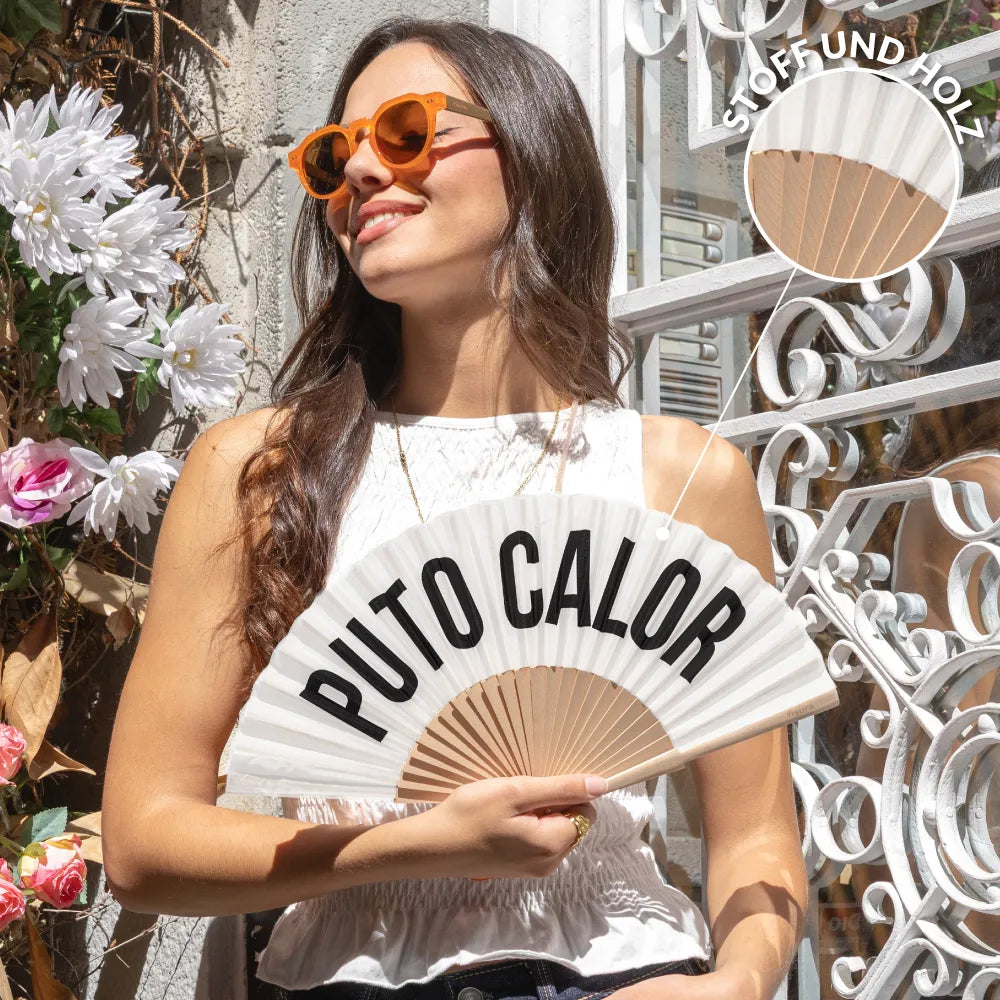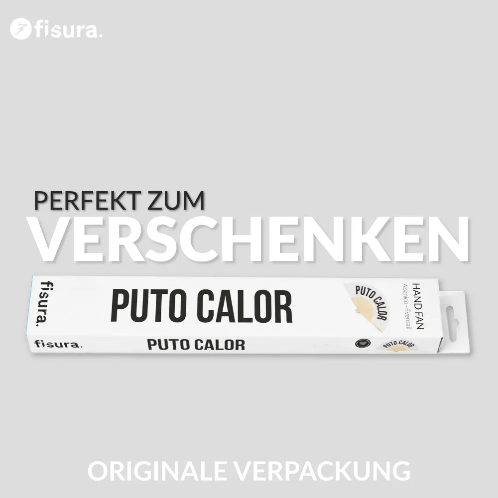 Wenn die Temperaturen steigen, wird der Alltag schnell anstrengend: schlechter Schlaf, schmelzendes Eis, Mücken und stickige Luft. Dieser Handfächer mit dem Aufdruck „puto calor“ macht klar, wie sehr dir die Hitze zu schaffen macht und sorgt gleichzeitig für schnelle Abkühlung.