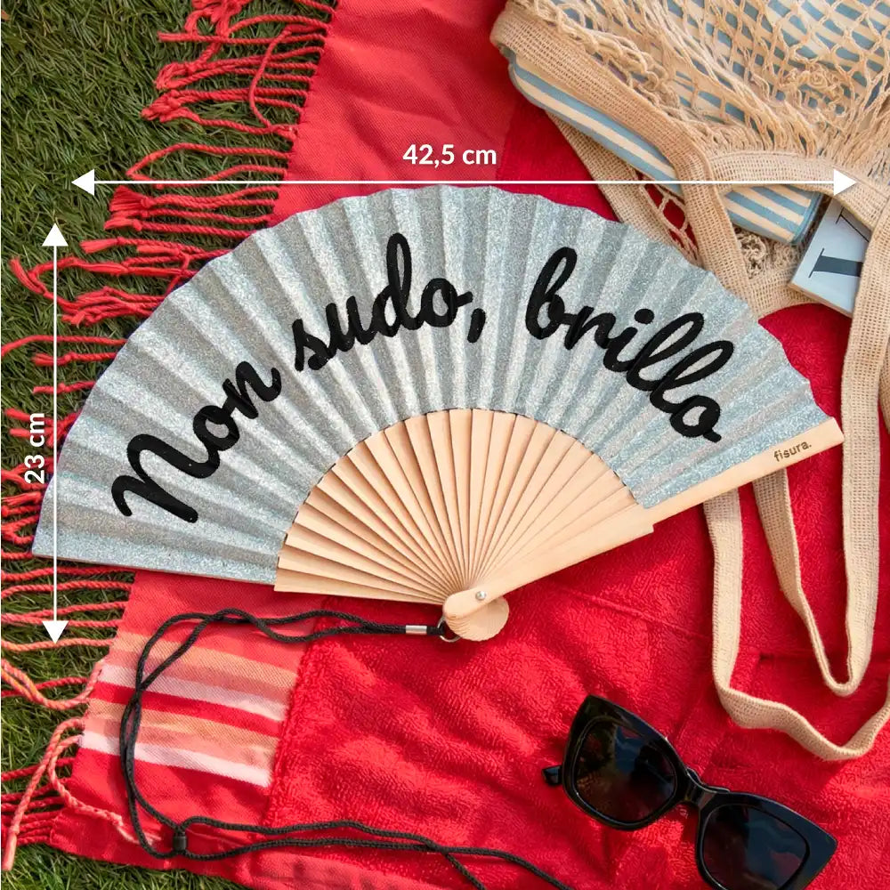 Abanico “Non sudo, brillo” purpurina