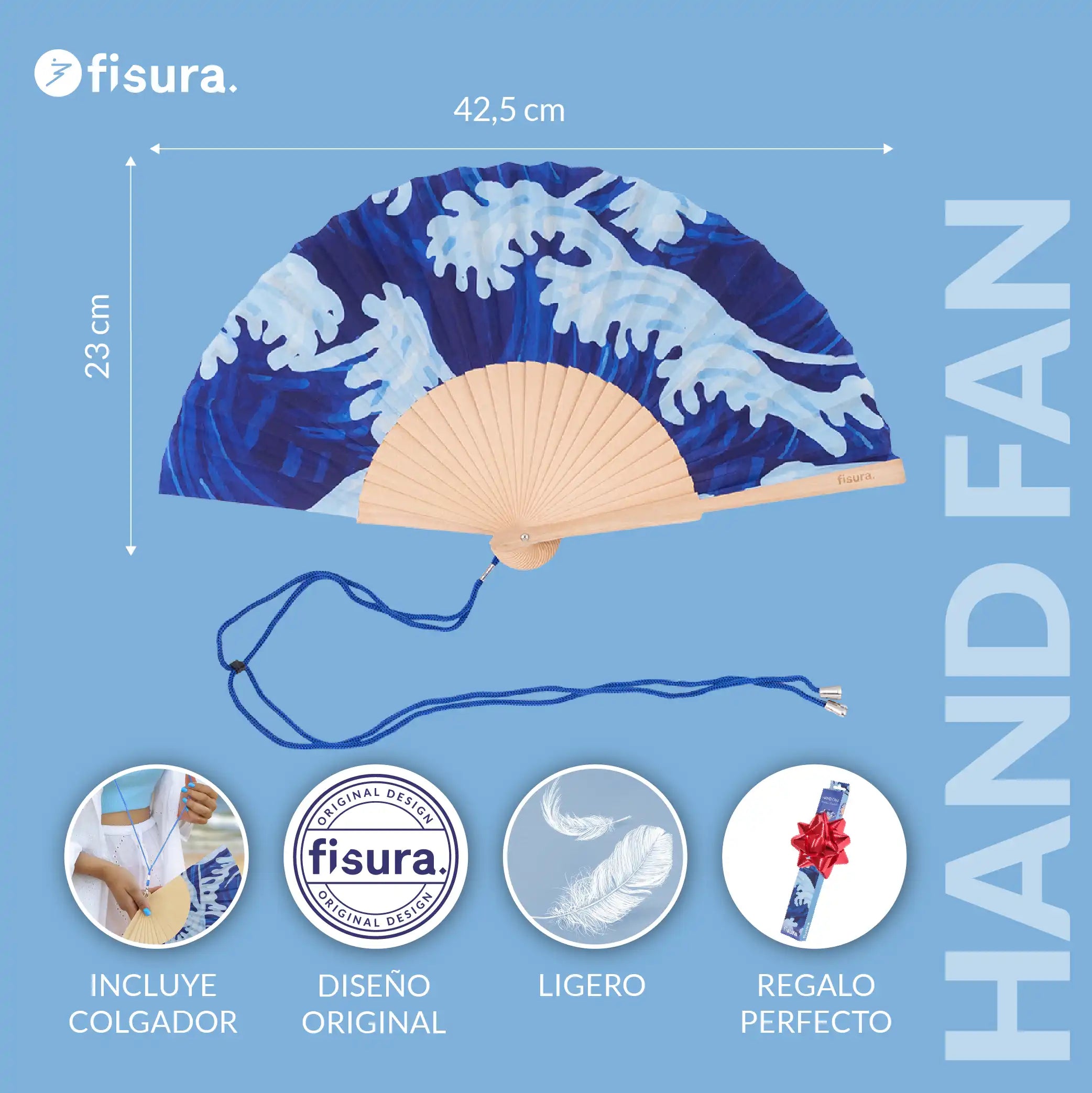 Déjate envolver por la brisa marina con este abanico con estampado de olas 🌊 que es ideal para refrescarte y llevar un pedacito de playa contigo allá donde vayas. Cada movimiento es como estar en la orilla, sintiendo el aire fresco del mar mientras el sol brilla. Además, incluye un práctico colgador para que siempre lo tengas a mano. ¡Cuélgatelo y olvídate de rebuscarlo en el bolso o la mochila 🎒 cuando más lo necesites!