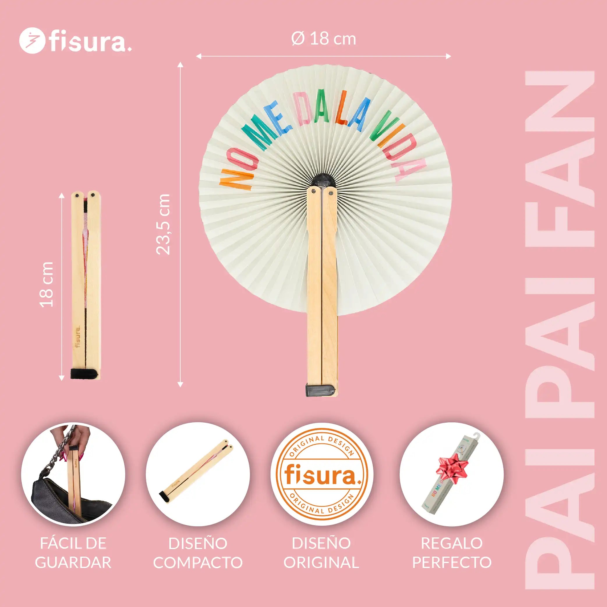 Refresca tu verano con este abanico pai pai con el mensaje “no me da la vida” multicolor, perfecto para esos días en los que el calor y las responsabilidades te superan. 🥵 Además, está hecho con papel y de madera de bosques gestionados de forma sostenible, así que podrás plantar cara a las altas temperaturas de la forma más eco. 🌿