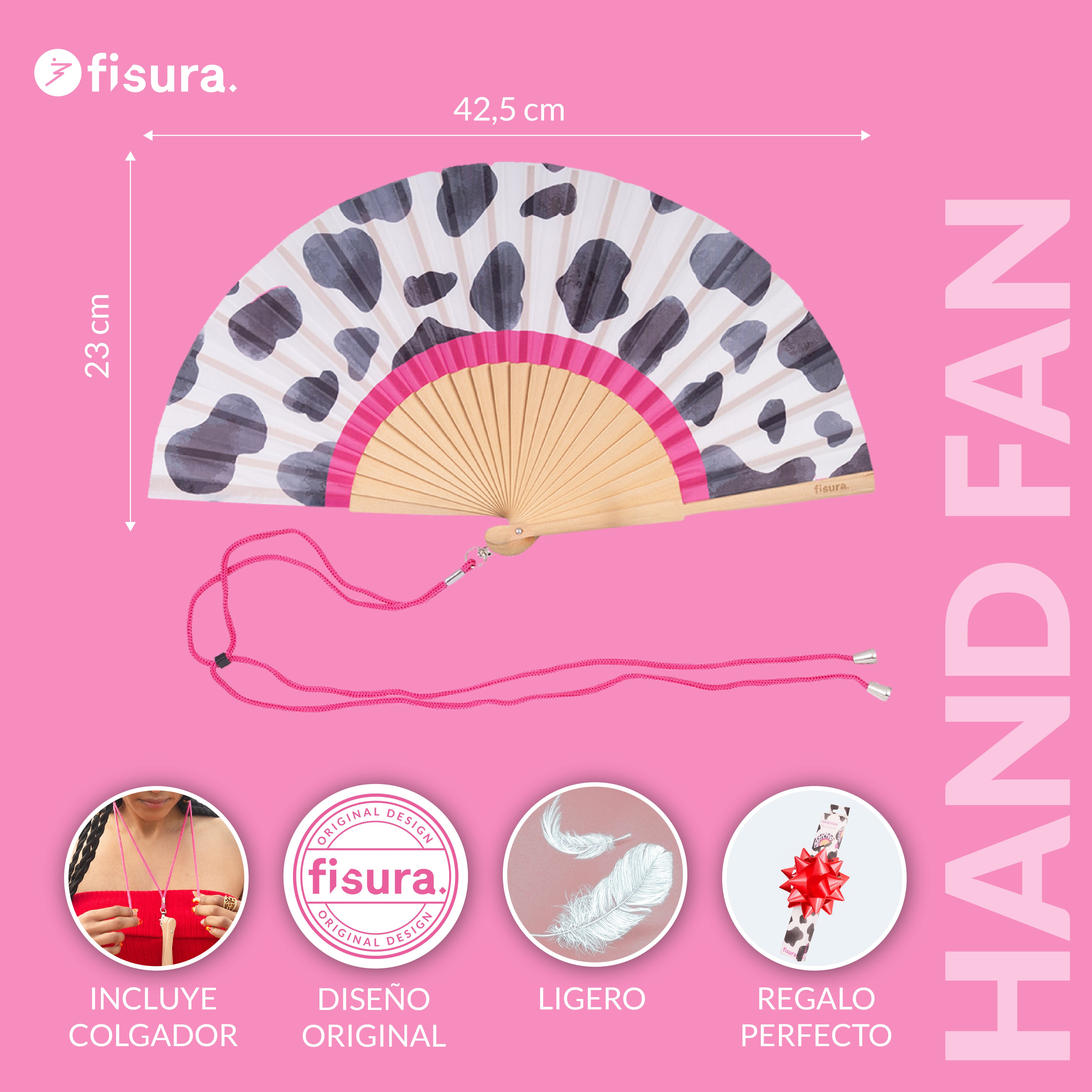 Este abanico con estampado de vaca 🐄se convertirá en tu mejor aliado en los días de muuuuuuuuucho calor, dándole a tus looks veraniegos un toque colorido y dejando claro cuál es tu animal favorito. Además, incluye un práctico colgador para que siempre lo tengas a mano. ¡Cuélgatelo y olvídate de rebuscarlo en el bolso o la mochila 🎒 cuando más lo necesites!