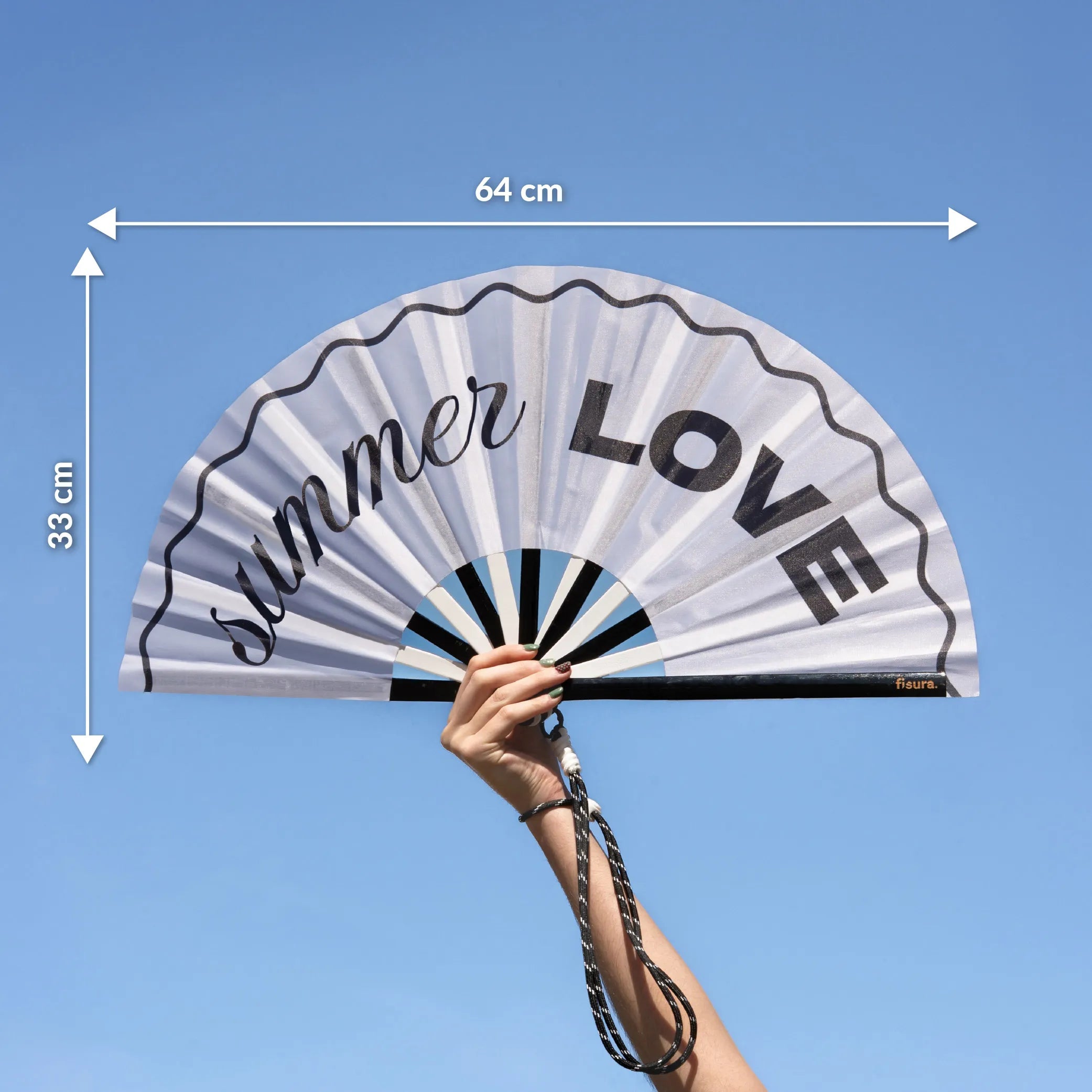 Si amas el verano, los planes al sol, el terraceo y la cerveza fresquita déjalo bien claro con este abanico XXL con el mensaje “summer love” 💗. Además, con su tamaño de 64 cm de largo y 33 centímetros de alto te dará el fresco que necesitas para refrescarte en medio del concierto, en tu pub favorito o en el camping del festival.