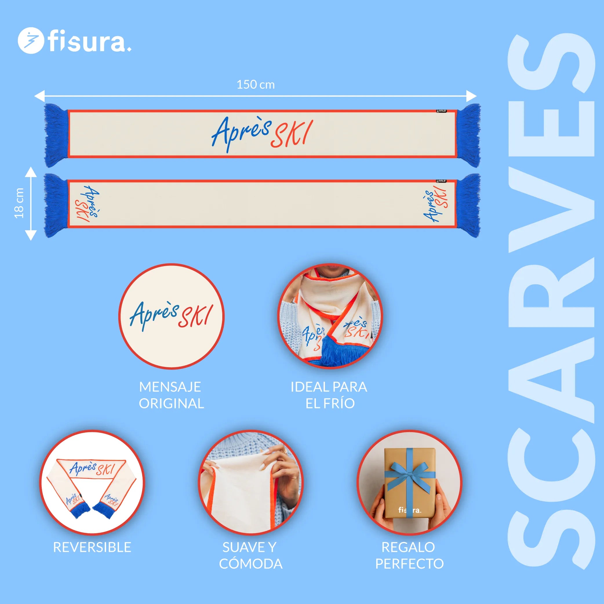 Si lo que más te gusta de ir a esquiar no es bajar pistas, sino relajarte después del día en la montaña ⛷️, esta bufanda original con el mensaje “Après Ski” es tu compañera ideal.