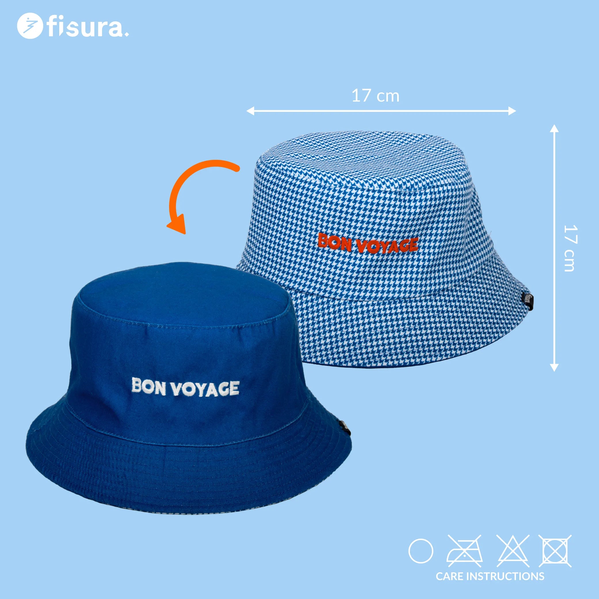 Este gorro de pescador es reversible, así que tienes dos looks en uno. Por un lado, estampado de pata de gallo para un toque más elegante y por el otro lado azul para un toque más fresco. Además, es talla única por lo que es ideal como gorro bucket de mujer (y también como gorro de pescador para hombre) ¡Es perfecto para protegerte del sol en la playa, en festivales, de paseo por la ciudad o en cualquier plan veraniego!