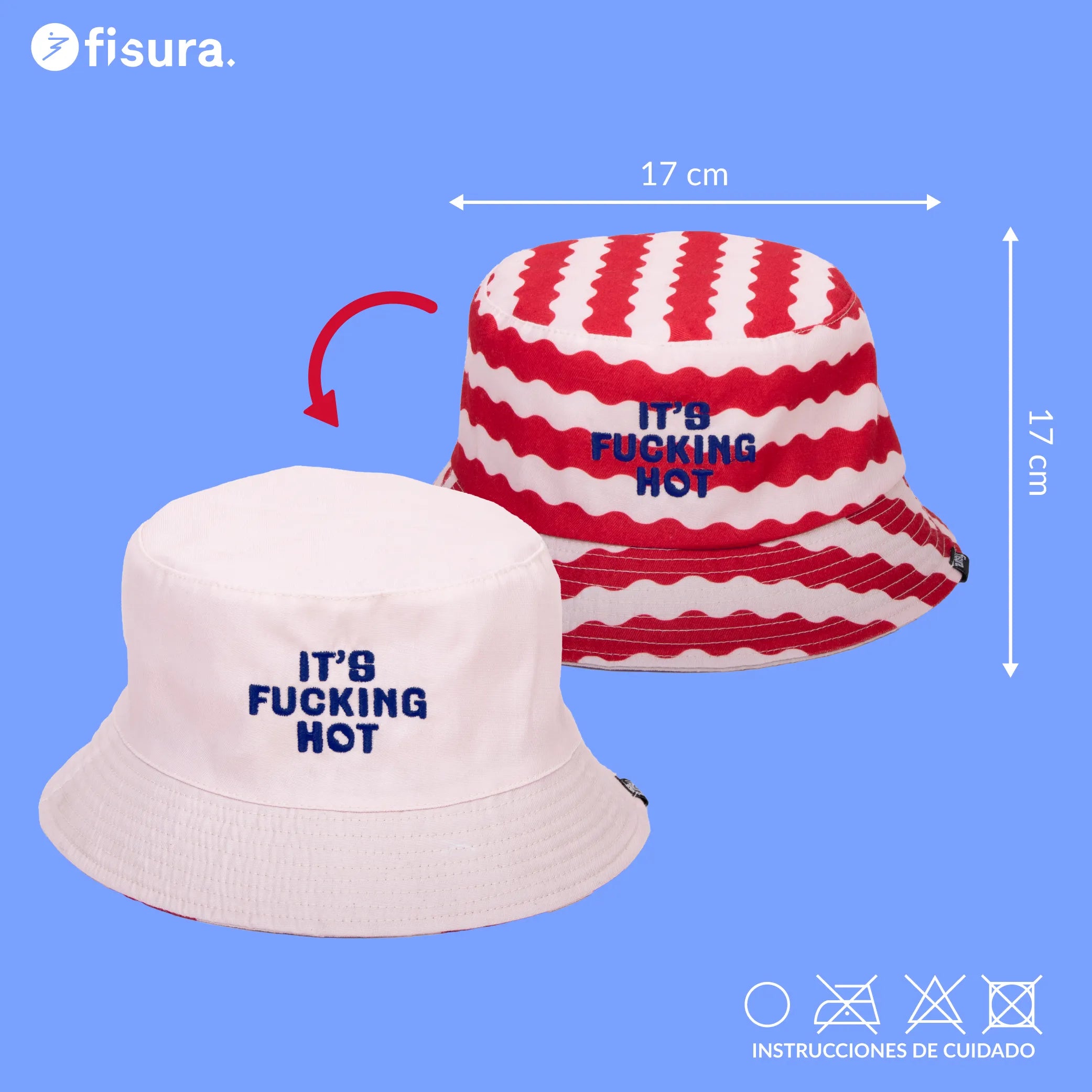 Ponte este bucket original con el mensaje bordado “it’s fucking hot” 🔥en los días en los que el calor no da tregua y lo único que quieres es sombra. ¡Dejarás bien claro que estás deseando que bajen las temperaturas porque hace un calorazo que no te deja ni vivir!